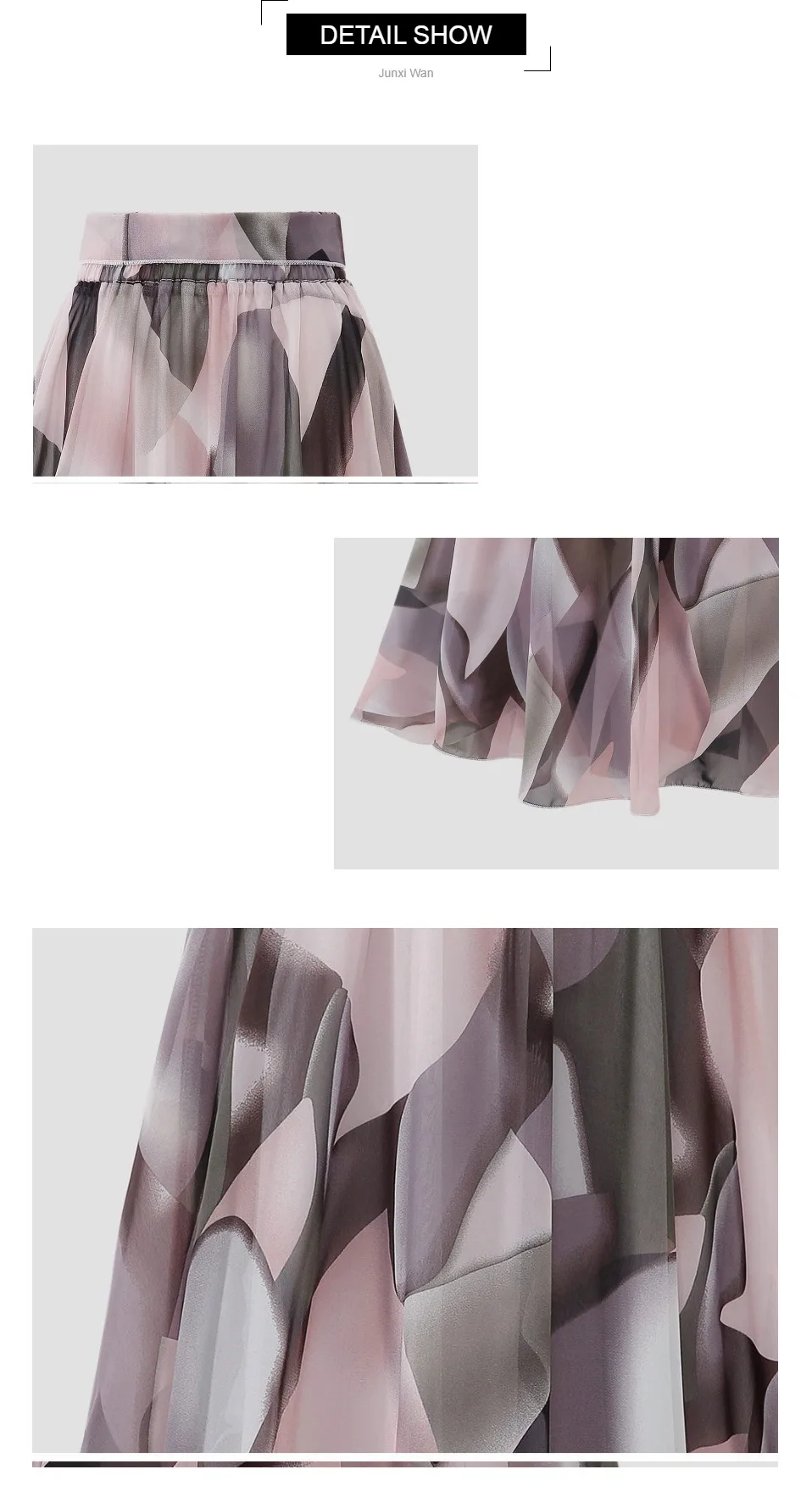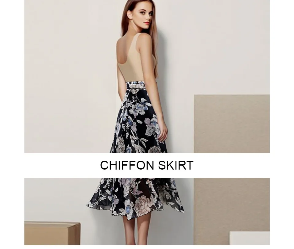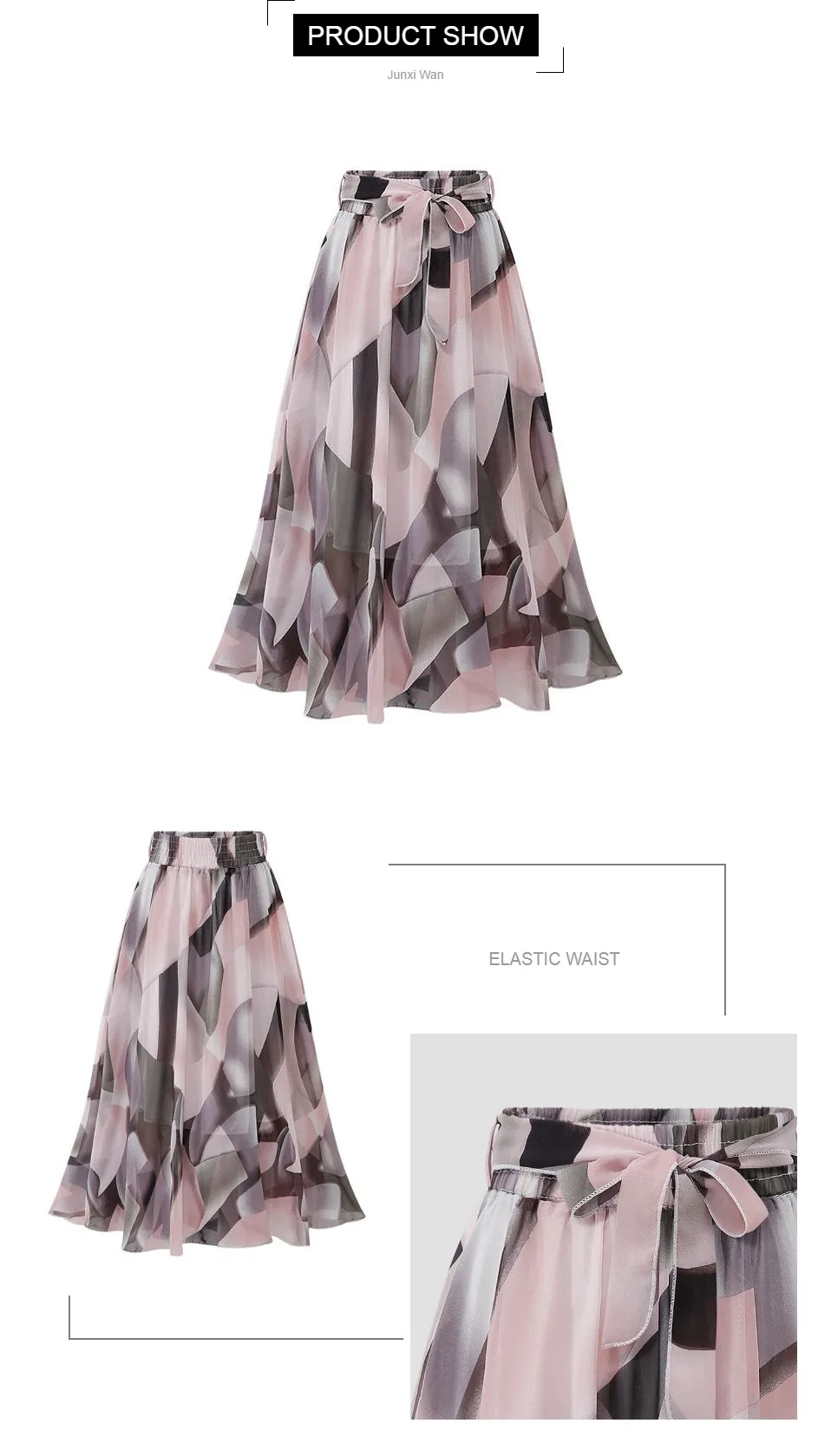 Vintage floral print chiffon skirts women Sprint Summer korean A line Pink streetwear high waist ladies midi skirt