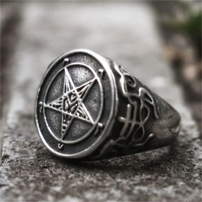 Vintage Personality Devil Satan Pentagram Ring Alloy Retro Gothic Punk Minimalist Signet Men's Jewelry Accessories Gift Wholesal