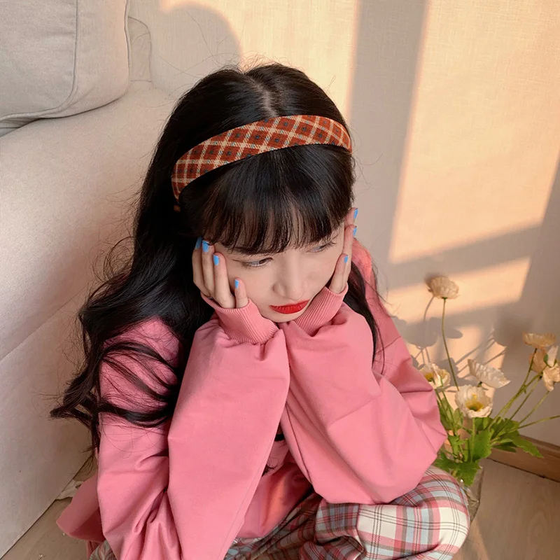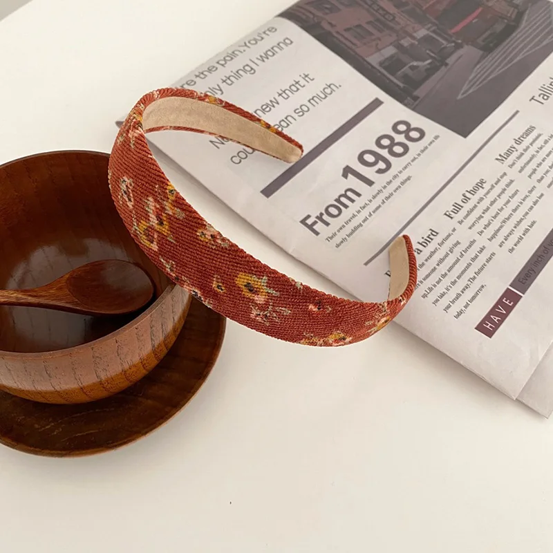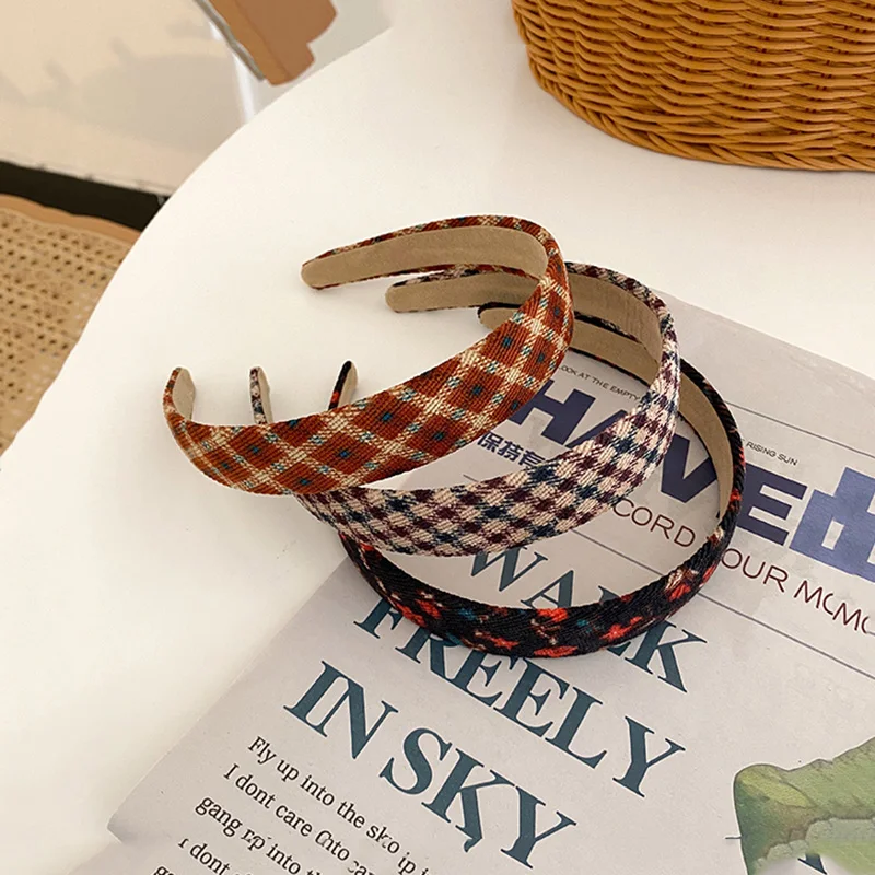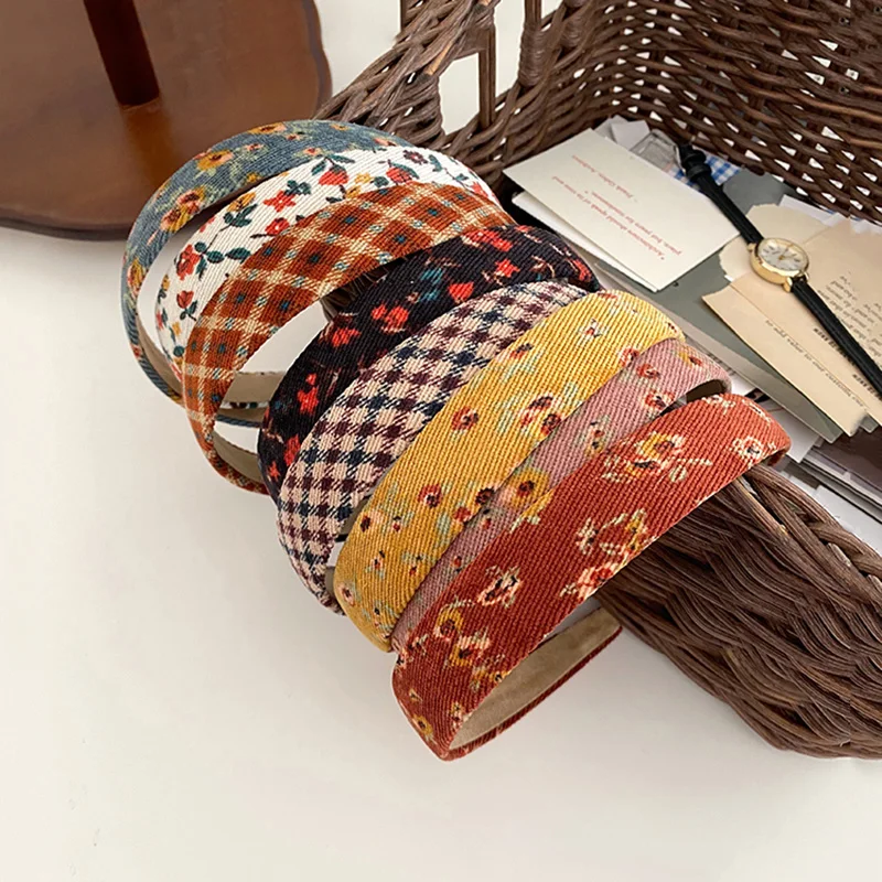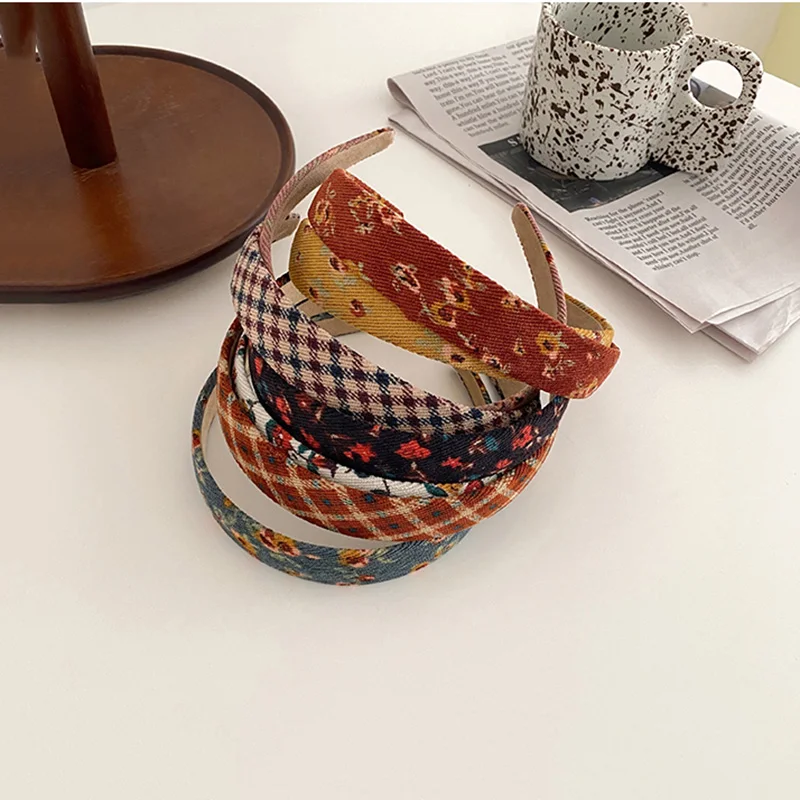 Vintage Plaid Floral Corduroy Headbands Flower Fall Hairbands Elegant Match Head Hoop Women Tiara Head Band Headwrap Accessories
