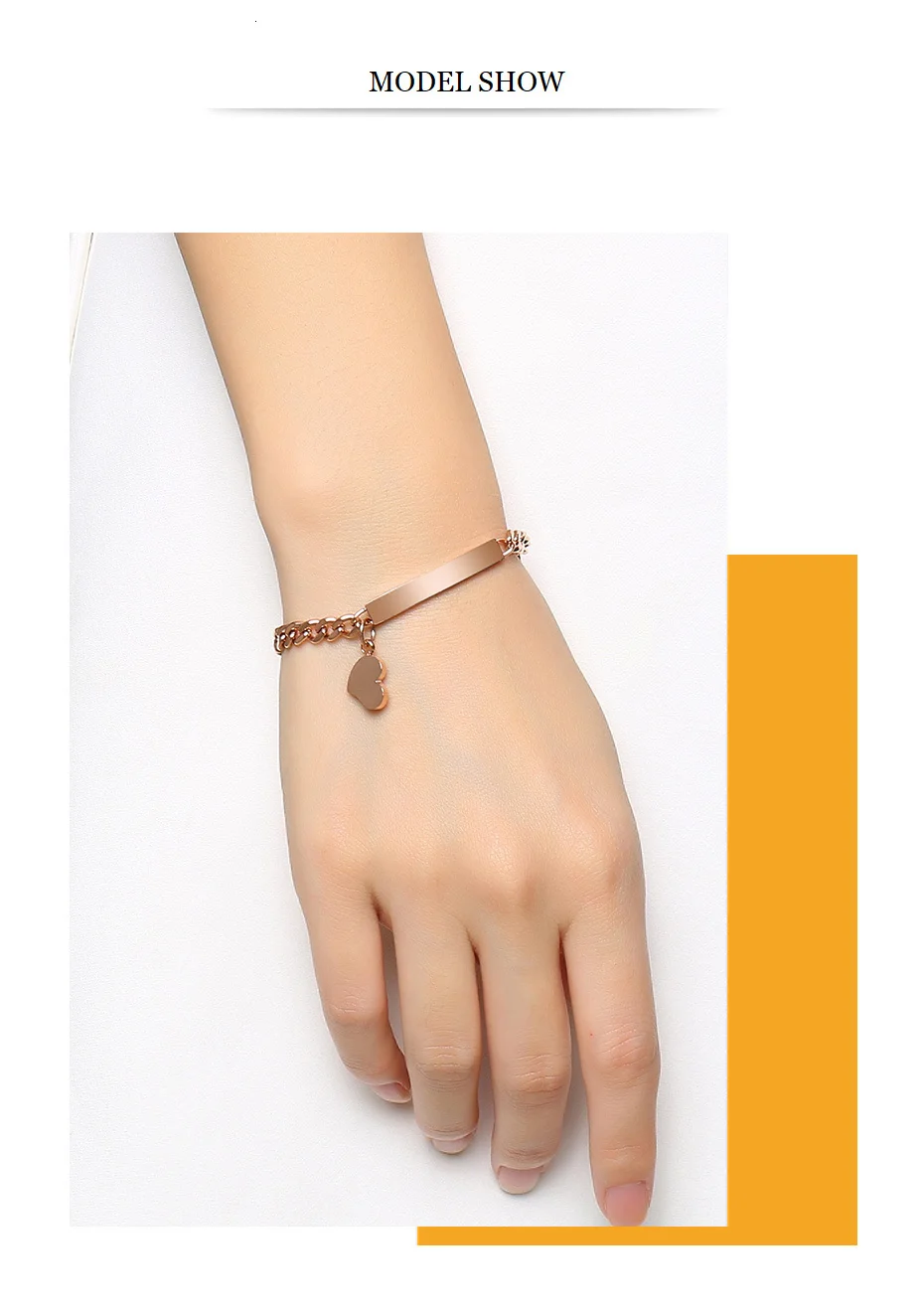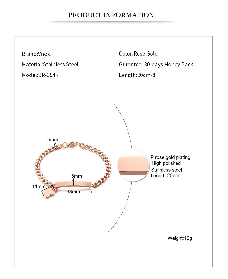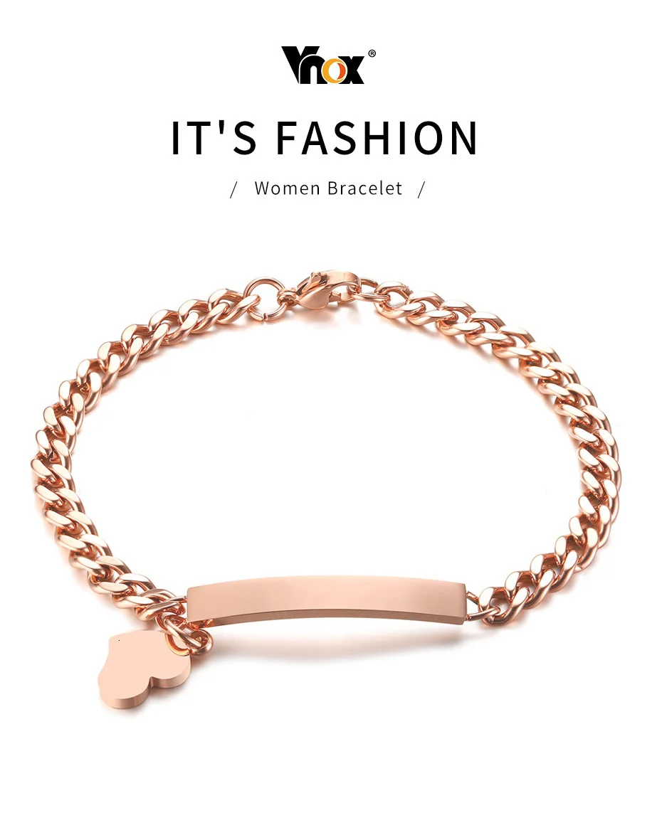 Vnox Free Engraving Custom Bracelets for Women Girl 585 Rose Gold Stainless Steel Elegant Female Jewels Personalize Gift for Her