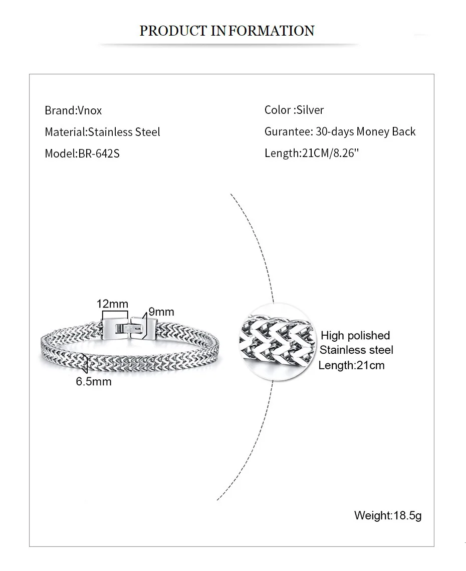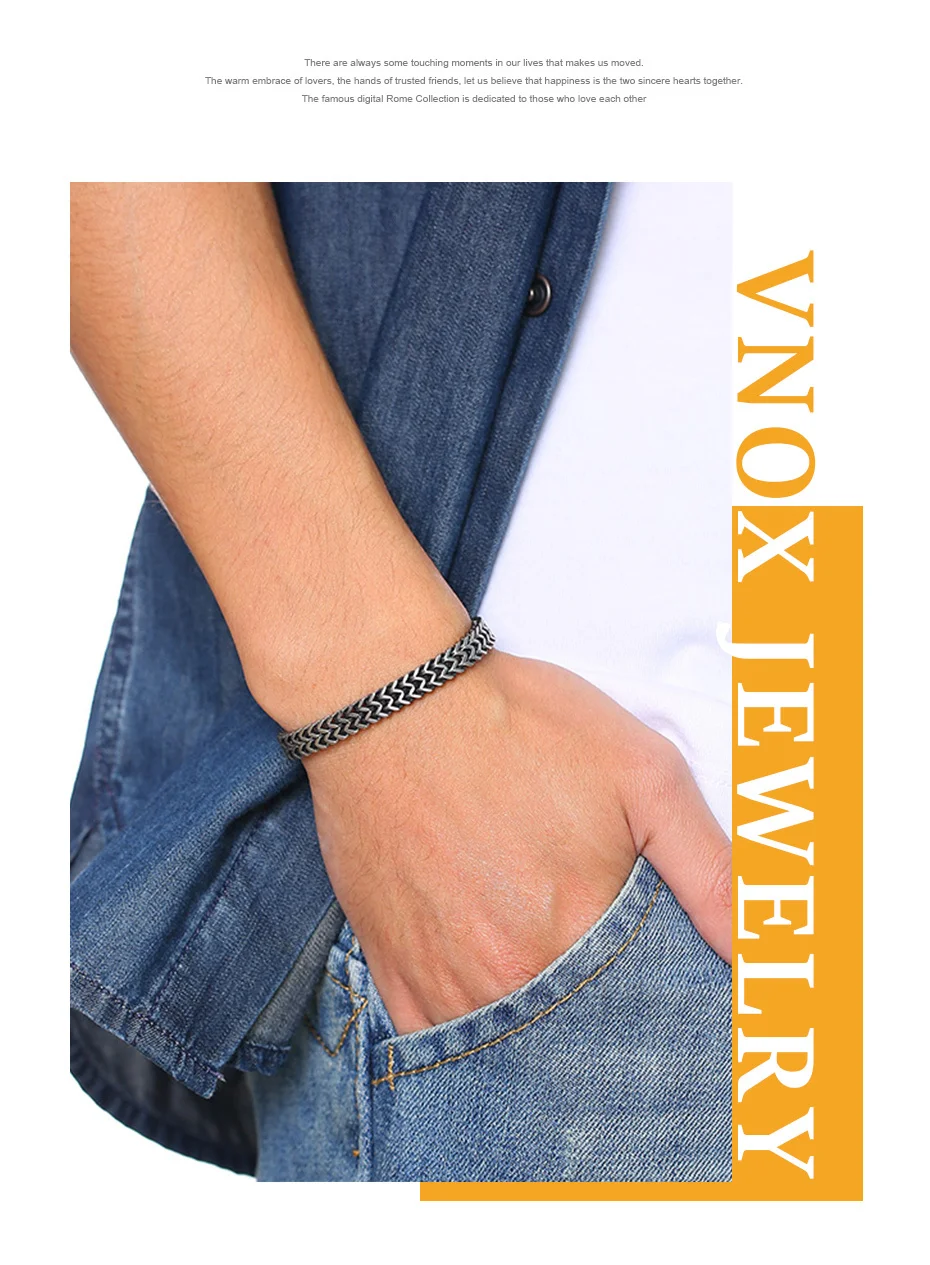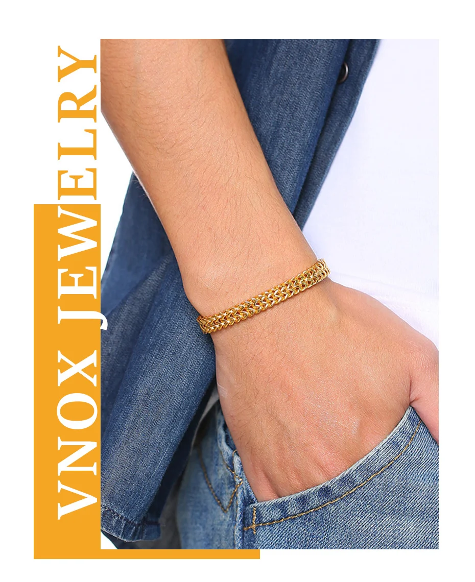 Vnox Vintage Oxidized Cool Double Curb Chain Bracelets for Men Stainless Steel Punk Antique Cubic Foxtail Chain Male Pulseira
