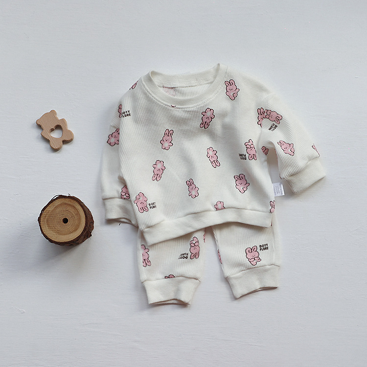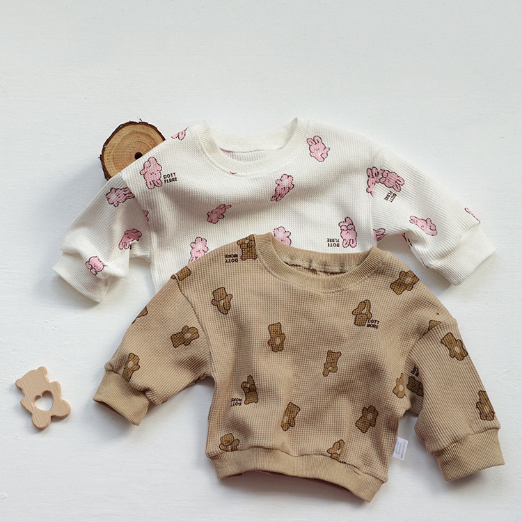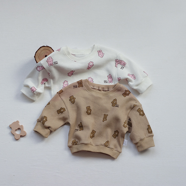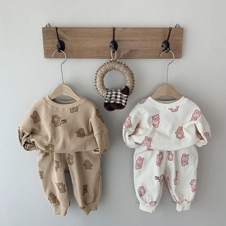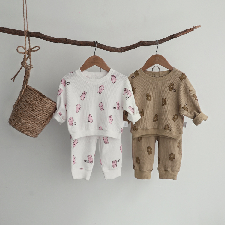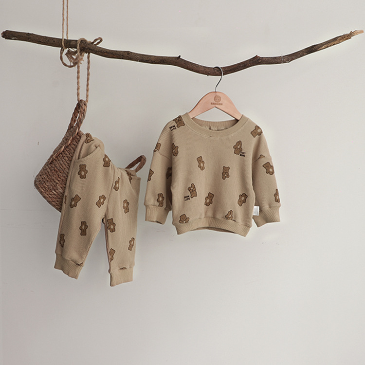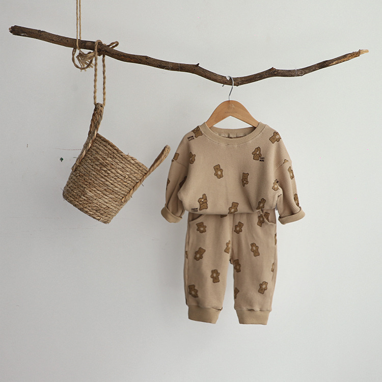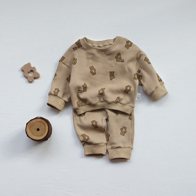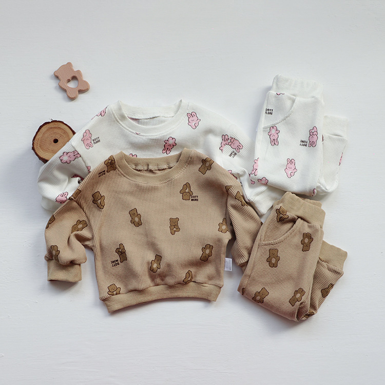 Waffle Bear Printed Two Piece Cotton Suit Set For Kids