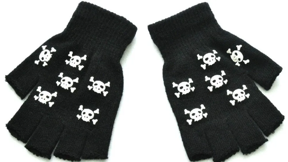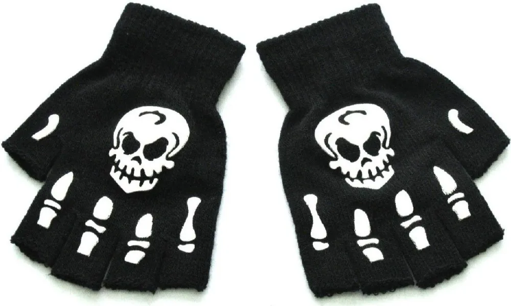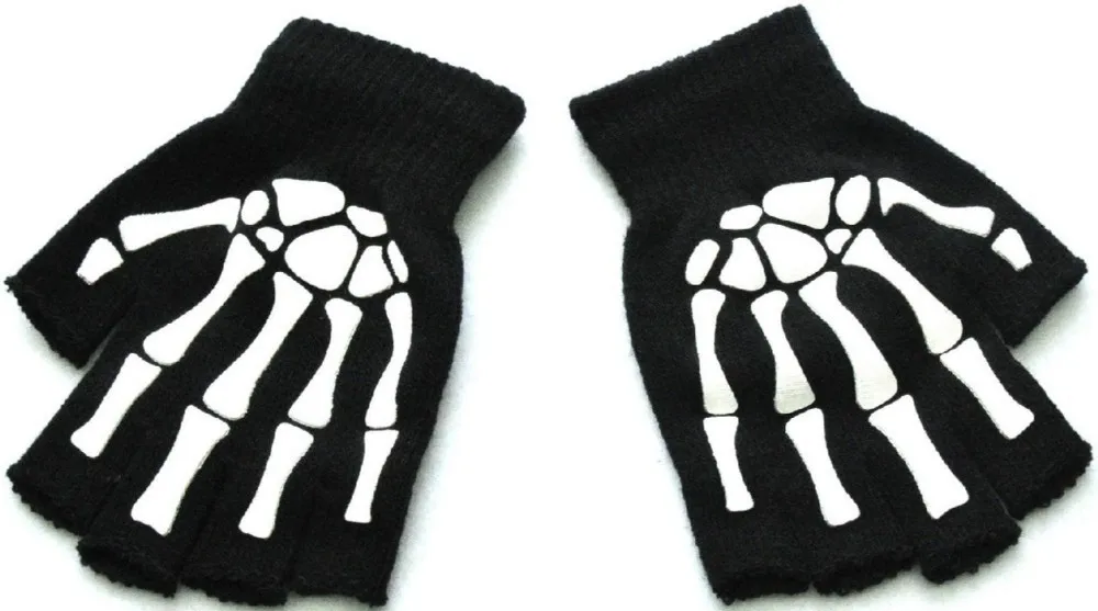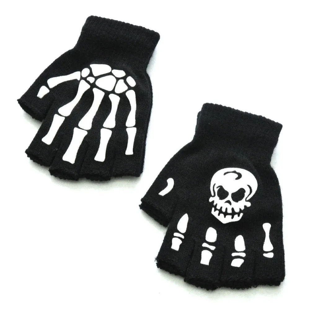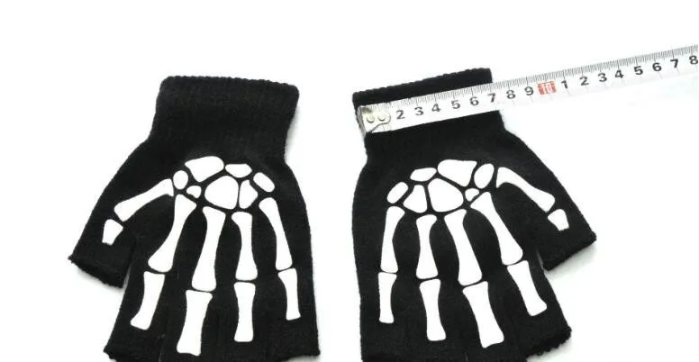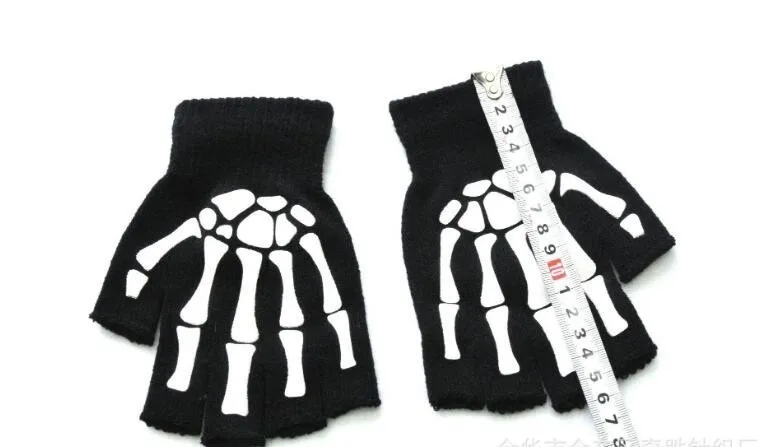 Warm Knitting Gloves For Adult Solid Acrylic Half Finger Glove Human Skeleton Head Gripper Print Cycling Non-slip Wrist Gloves