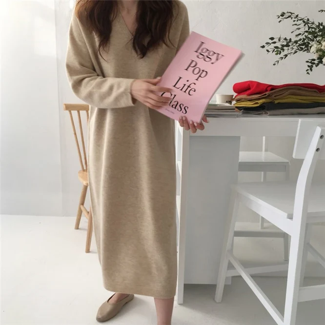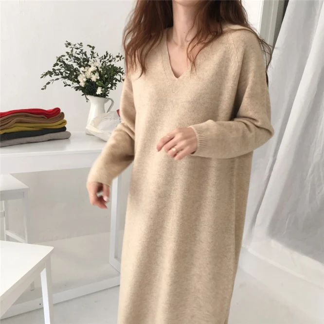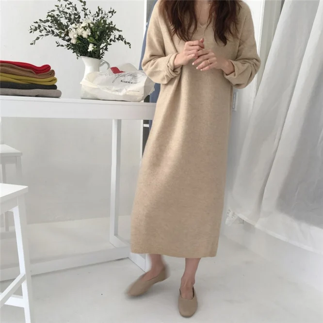 Warm Sweater Women Autumn Dress Winter Long Sweater Knitted Dresses Long loose Maxi Oversize Lady Dresses Bodycon Robe Vestidos
