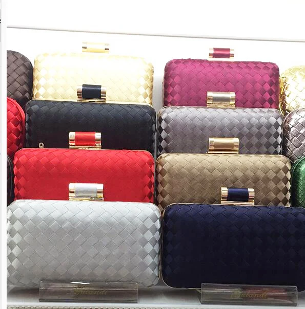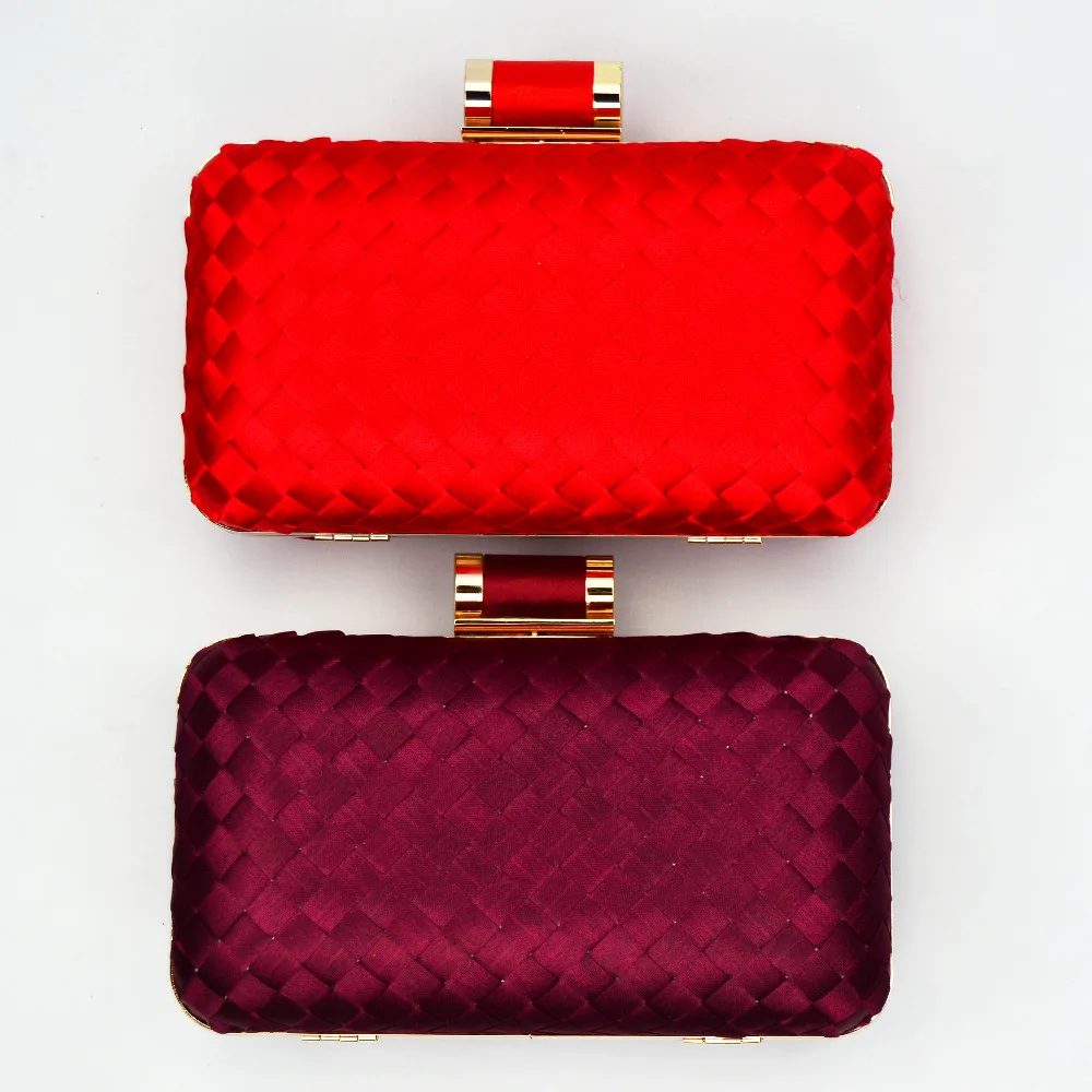 Weave Satin Chain Clutch Handbags Weddinbg Purse for Lady