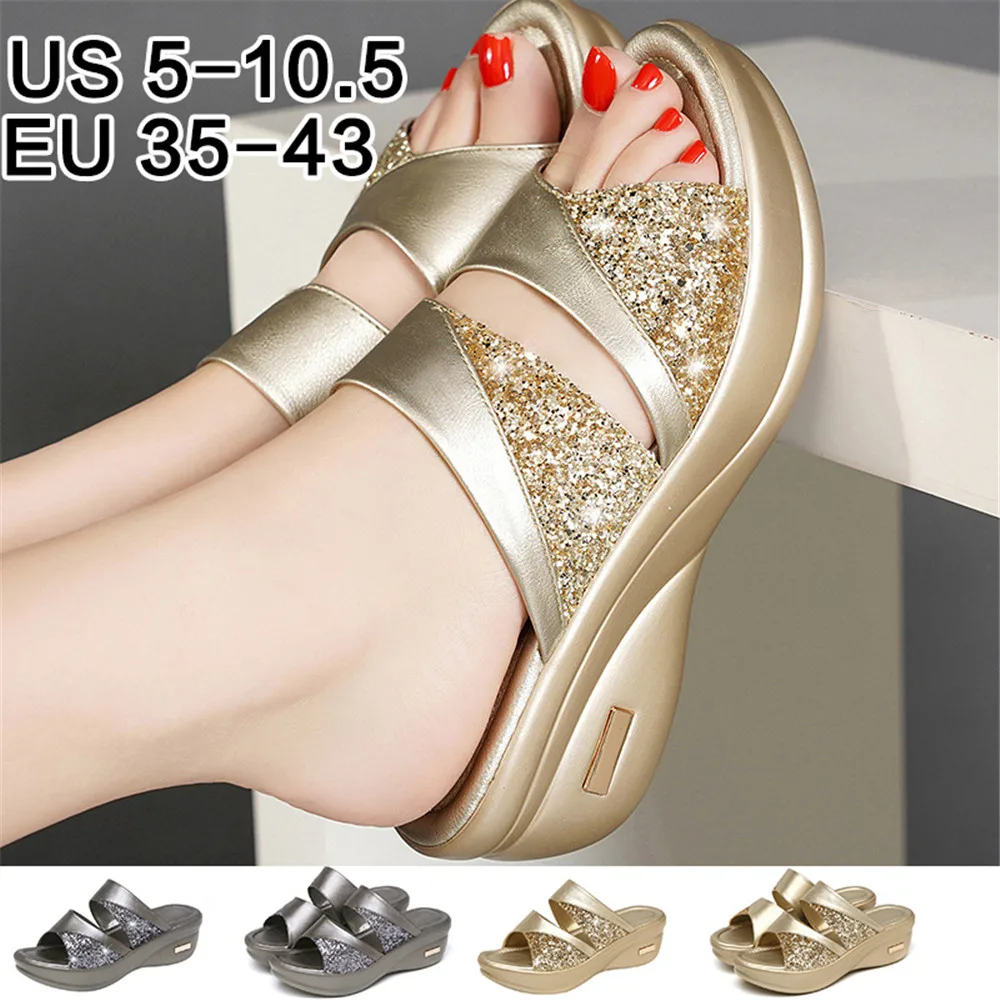 Wedges Sandals For Women Summer Beach Shoes Fashion Glitter Sandals Ladies Platform Slippers Female Crystal Sandalia Feminina