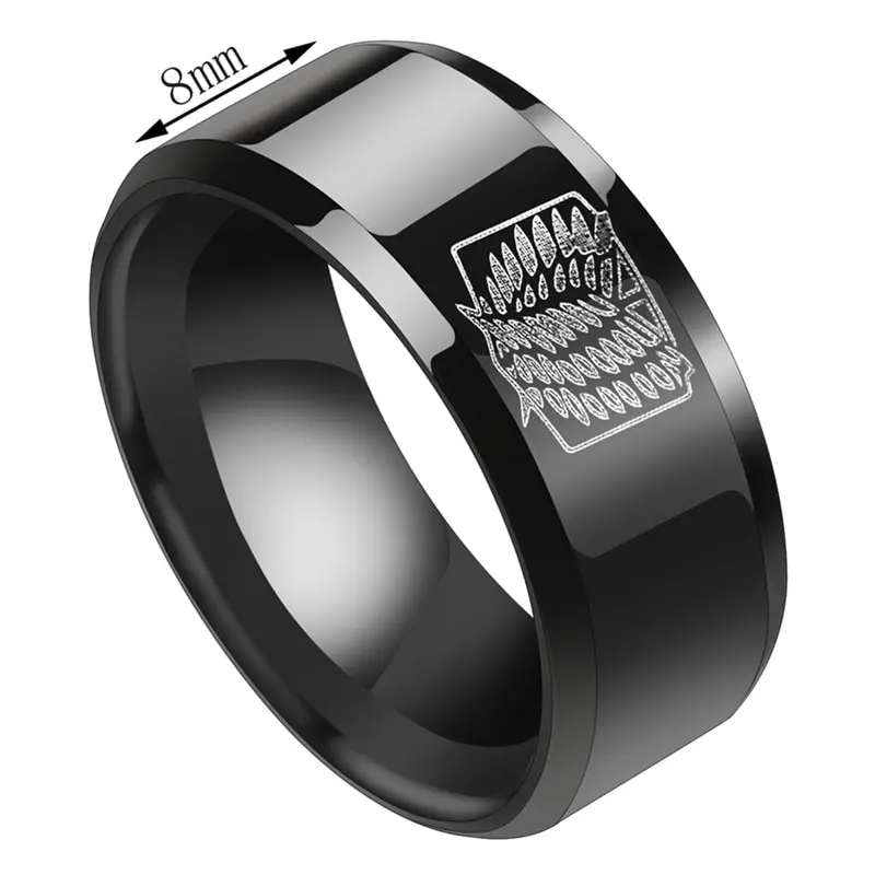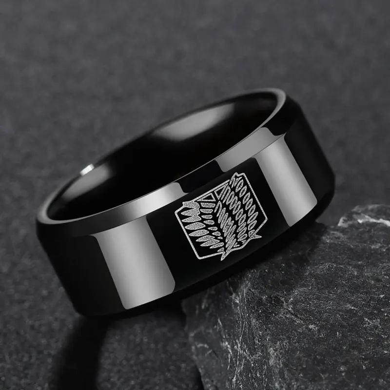 Wide Tianium Steel Attack On Titan Black Ring Giant Legion Flag Signet Men Ring Anime Fans Gifts