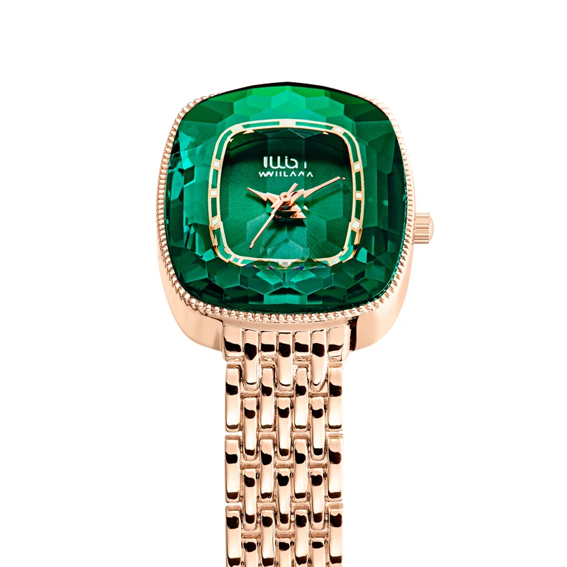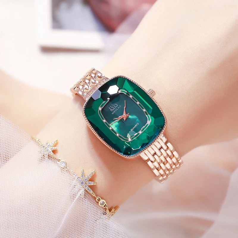 WIILAA Brand Women Watches Bracelet Set Green Dial Simple Rose Gold Mesh Luxury Women Watches Fashion Square Ladies Quartz Watc