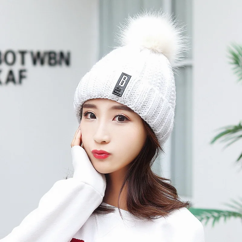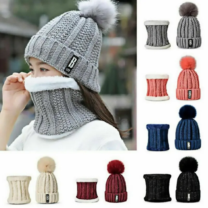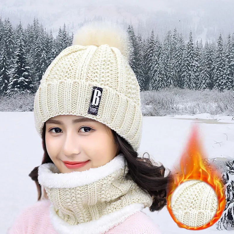 Winter Knitted Beanies Hats Women Thick Warm Beanie Skullies Hat Female Knit Letter Bonnet Beanie Caps Scarf Outdoor Riding Sets