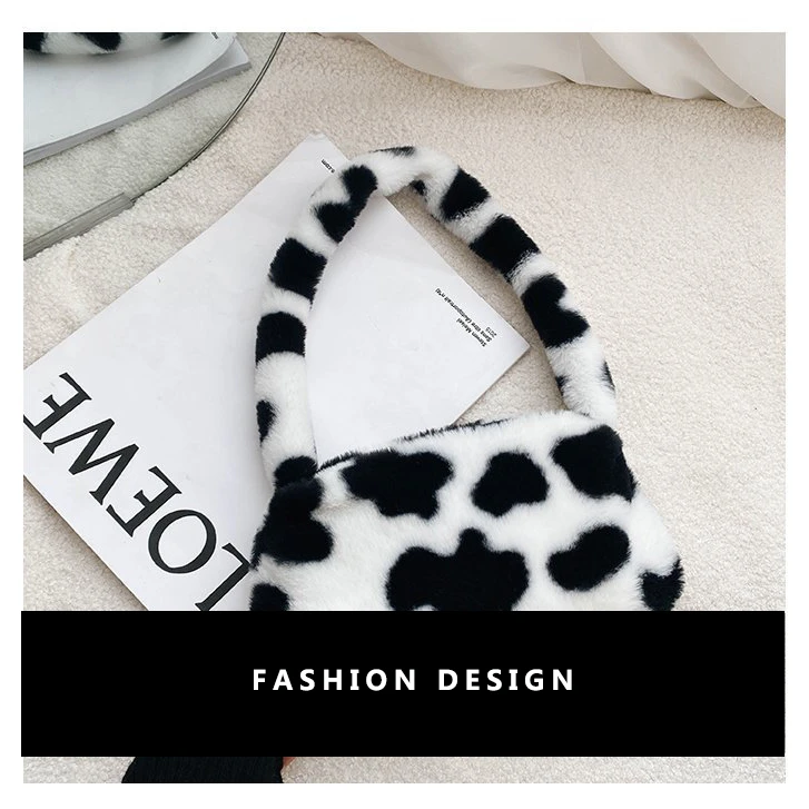 Winter Vintage Zebra Pattern Shoulder Underarm Bag Female Plush Autumn Handbag Soft Warm Fur Tote Purse For Lady Bag Sac A Main