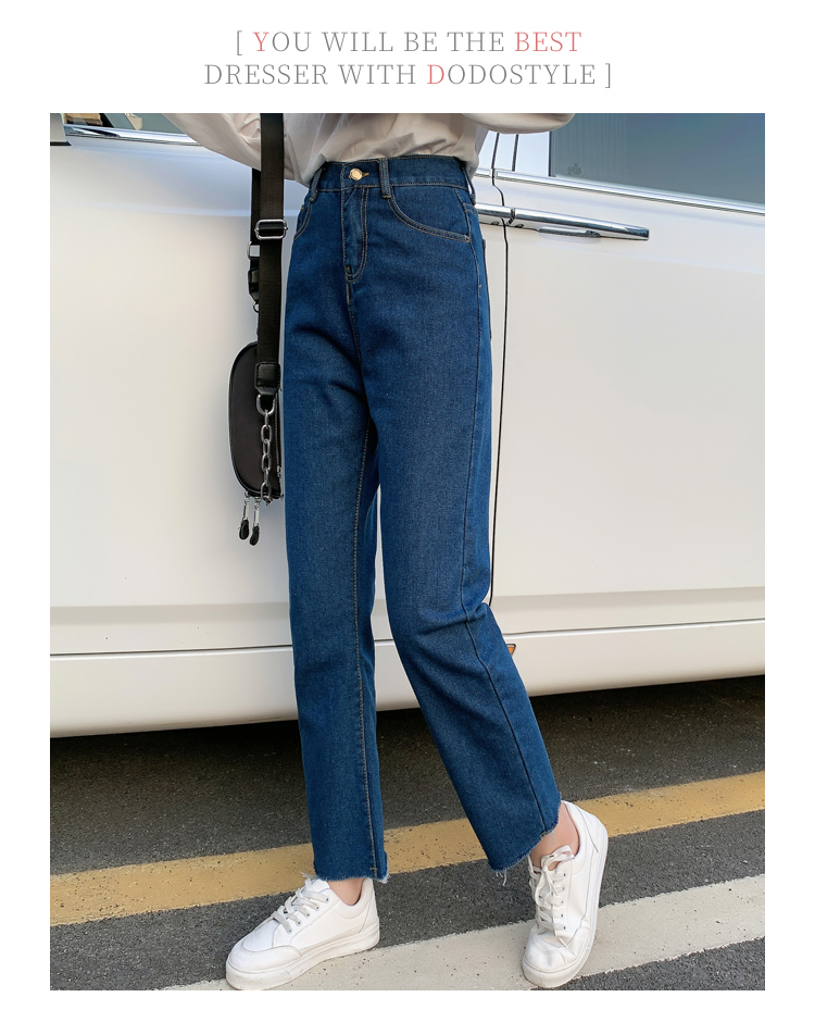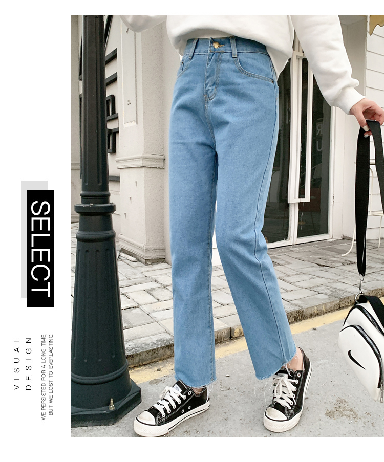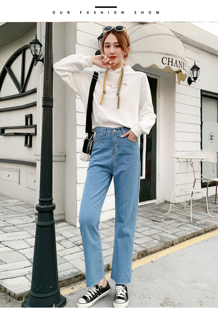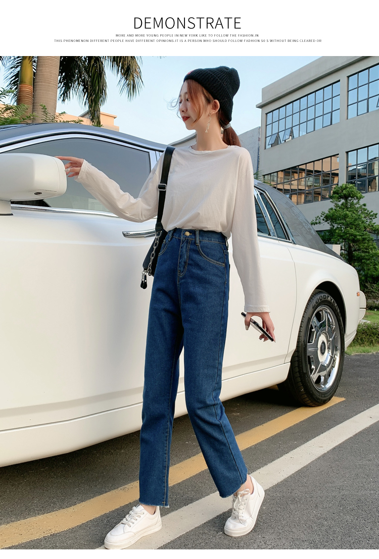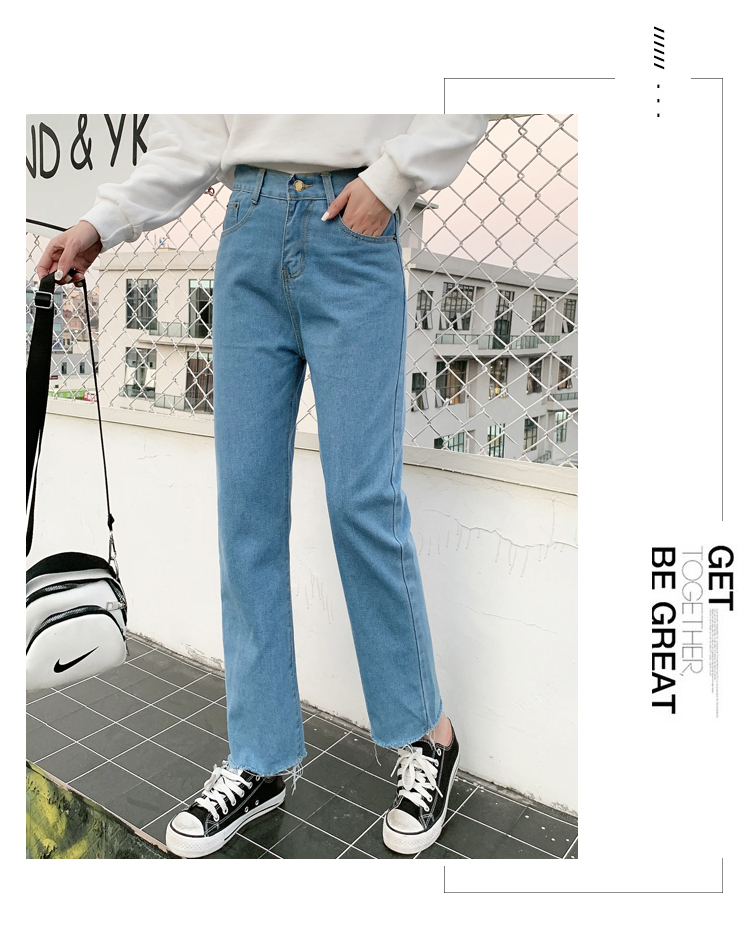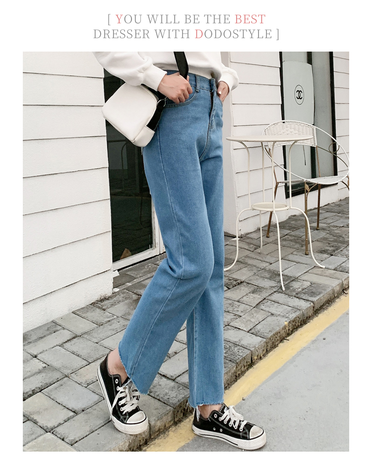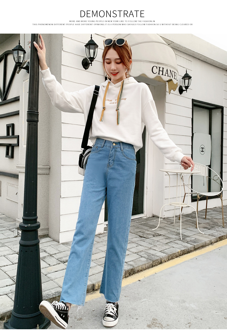 WITHZZ Spring Autumn Wide-leg Pants Women's High-waist Denim Pants Retro Loose Droop Straight Trousers Asian Size Jeans