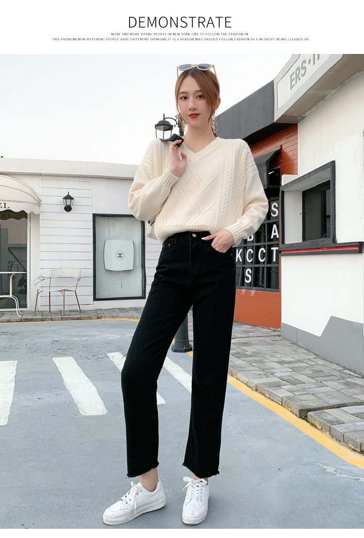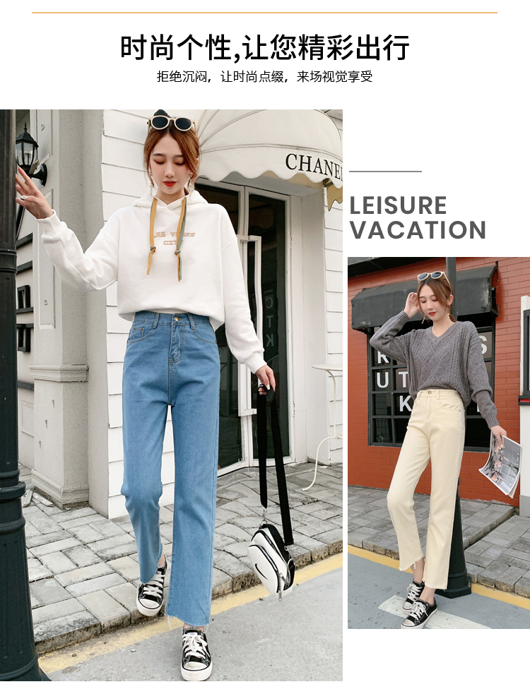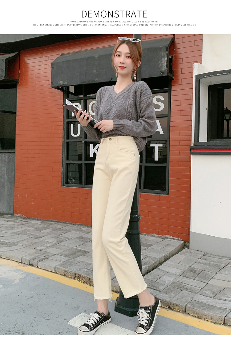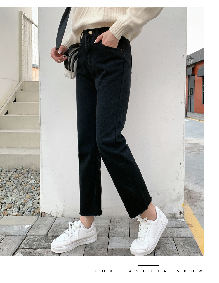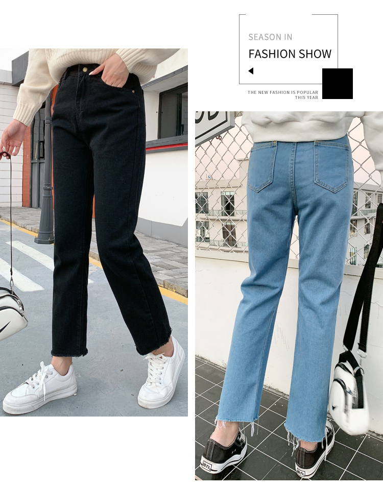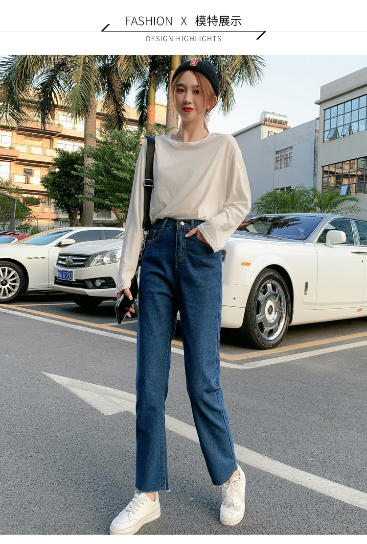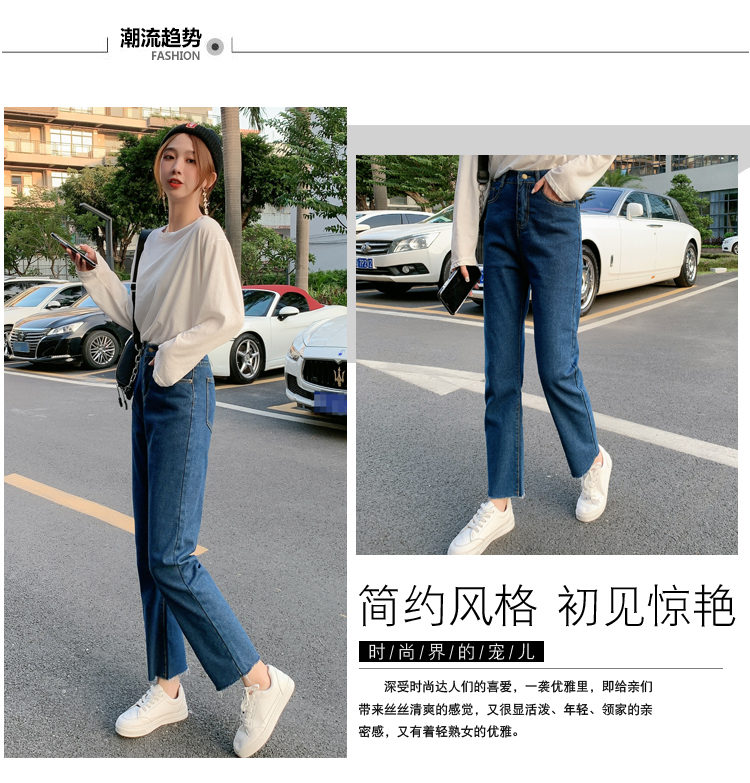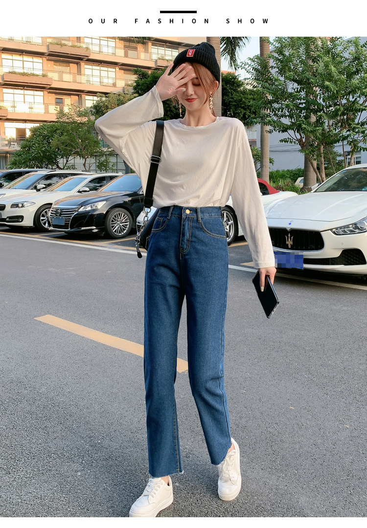 WITHZZ Spring Autumn Wide-leg Pants Women's High-waist Denim Pants Retro Loose Droop Straight Trousers Asian Size Jeans
