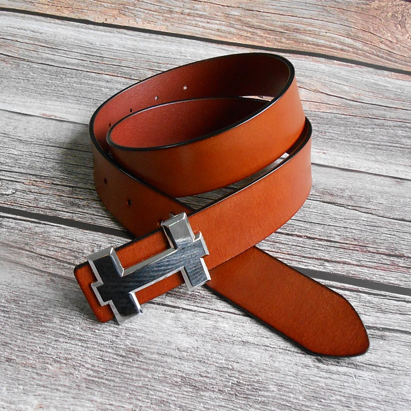 Women and Men Belt Cowhide Designer Real Leather Luxury Buckle Jeans Good Quality Waist Girdle H
