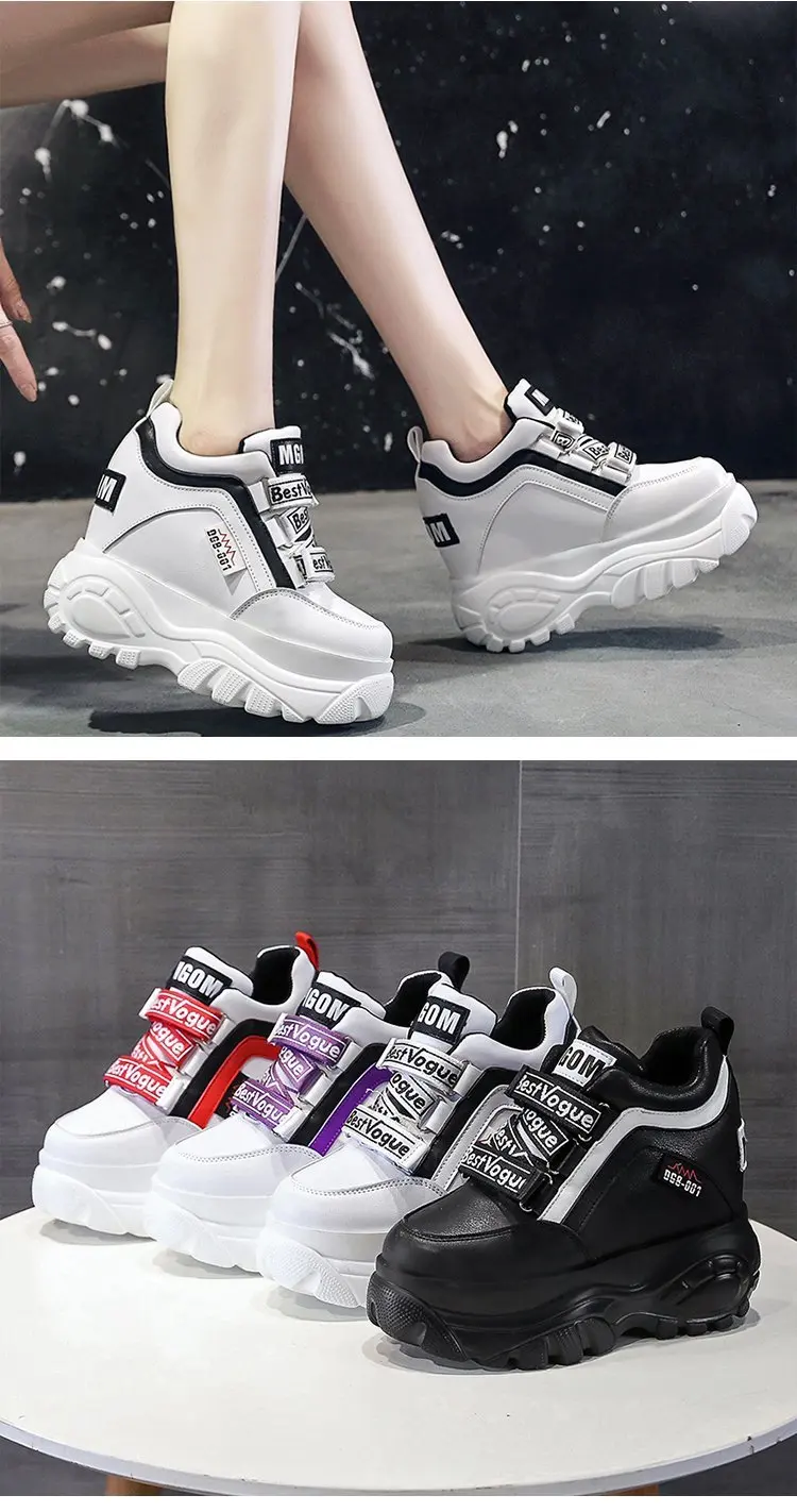 Women Chunky Sneakers 2020 Fashion Platform Sneakers Ladies Brand Wedges Casual Shoes for Woman Leather Sports Dad Shoes 7cm