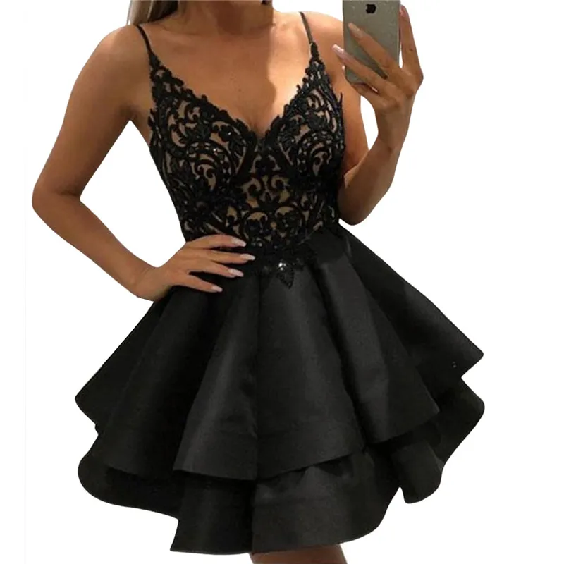 Women Formal Wedding sundress Ladies Sexy Straps Lace crochet Patchwork Swing Ball Mini dress Fashion V Neck Vestido Clothes New