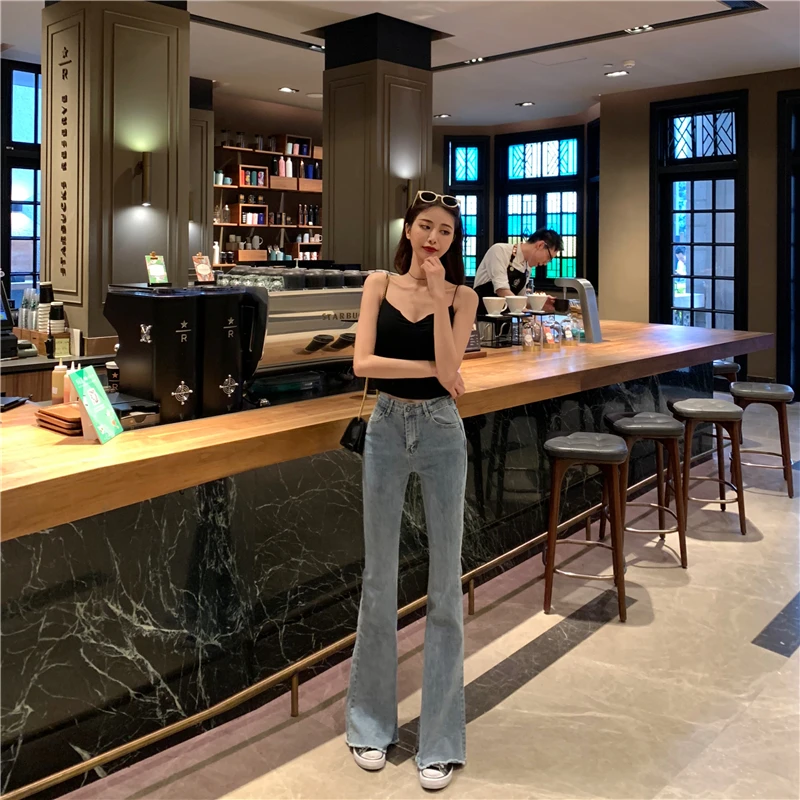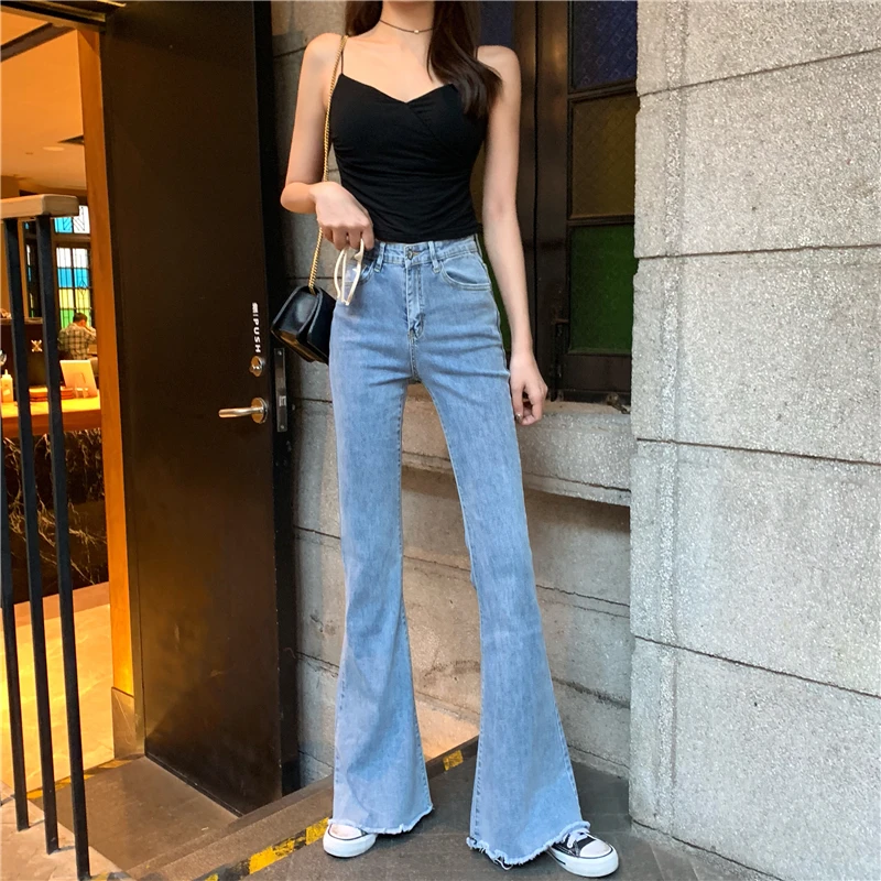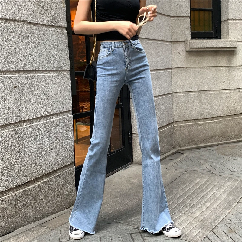 Women Jeans Heigh Waist Stretch Flared Pants Korean Fashion Slim Trousers Blue Black Denim Boot Cut Pant S-5XL