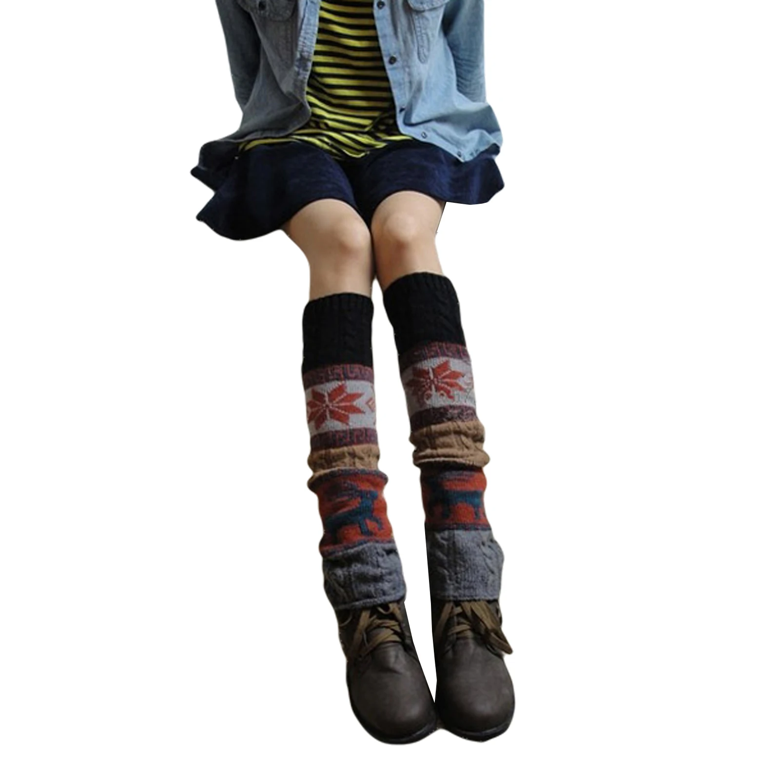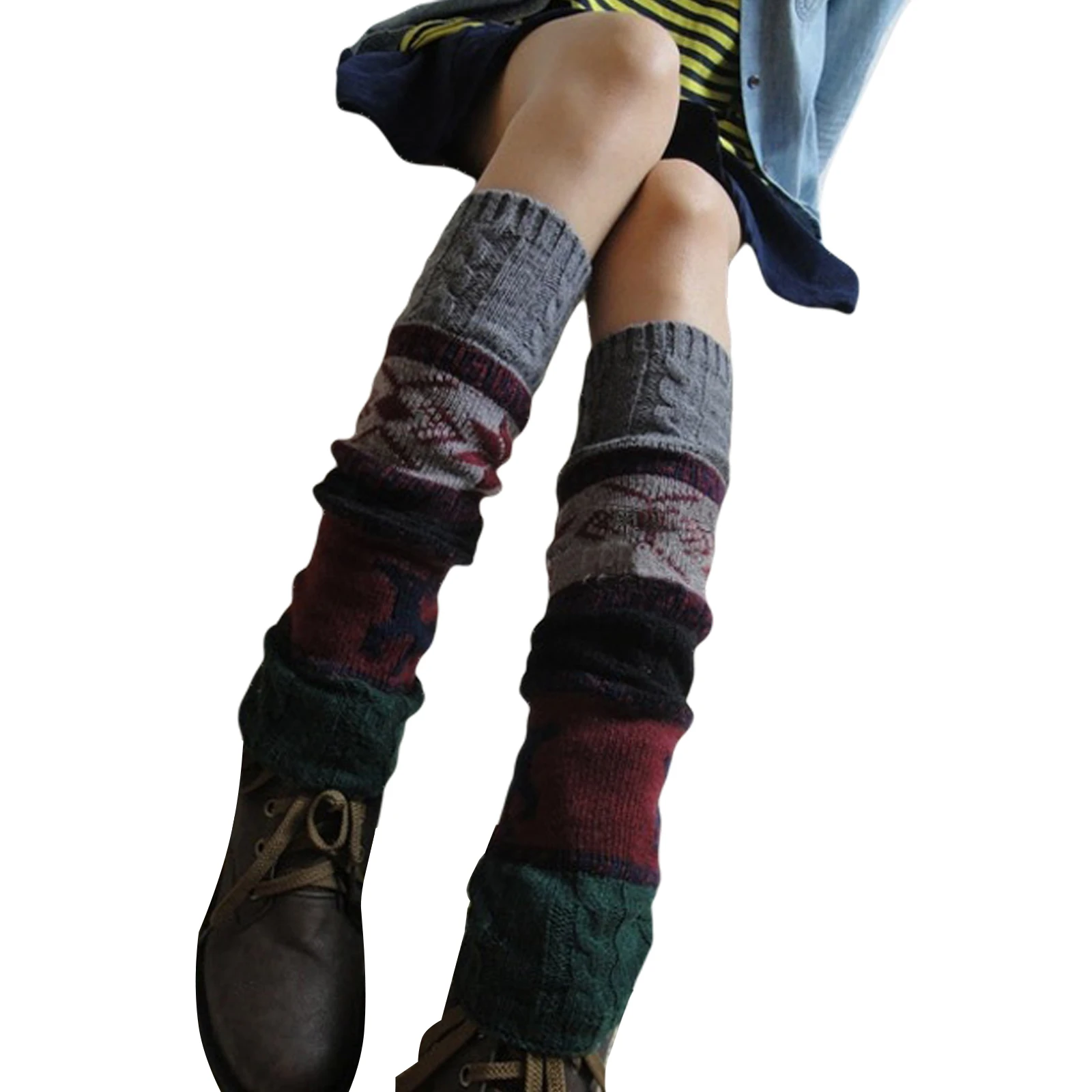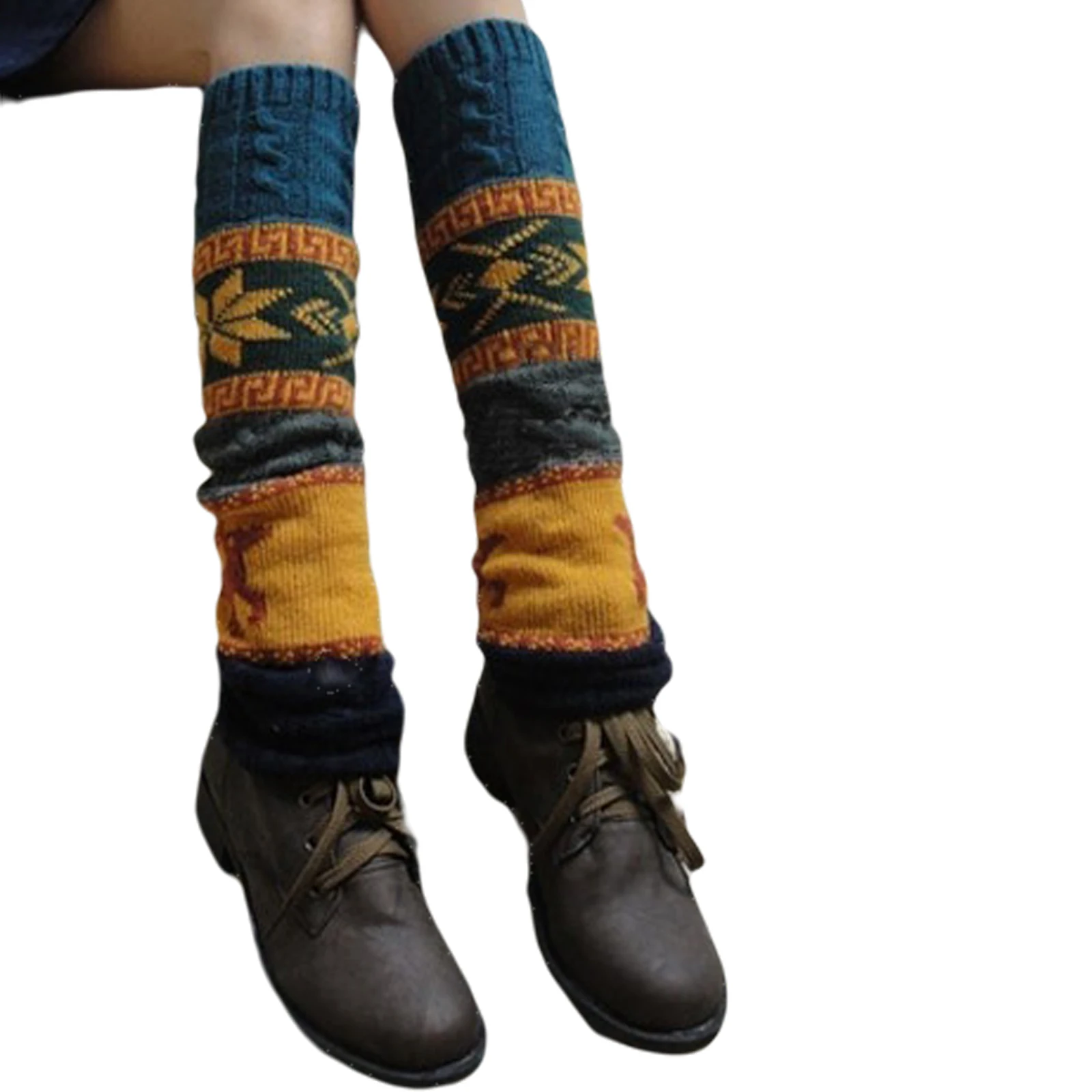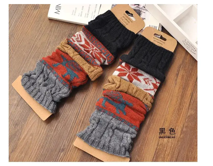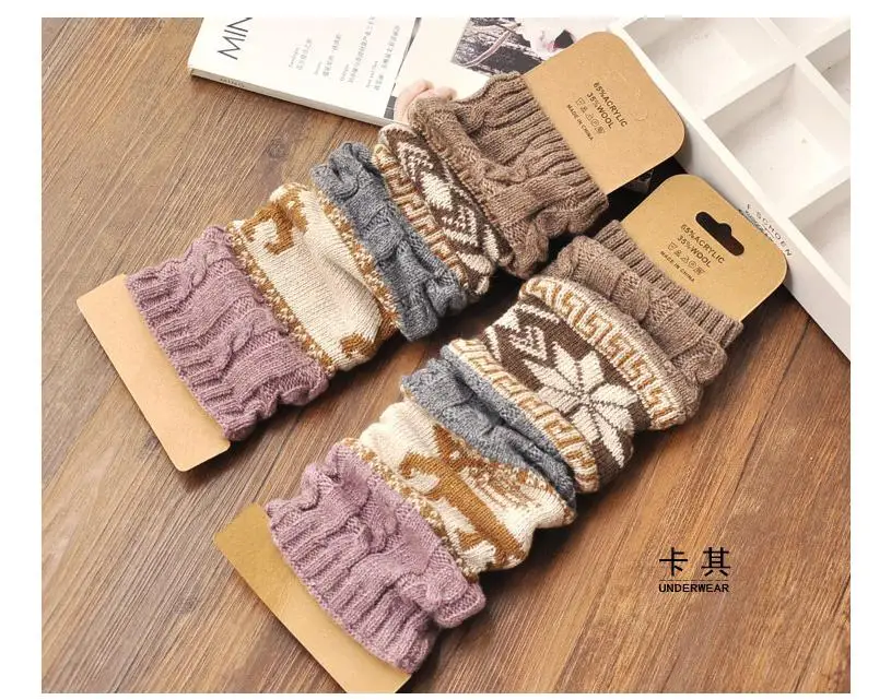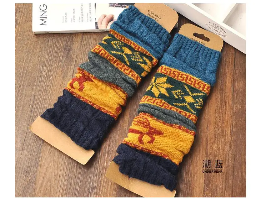 Women Knit Leg Warmers Cartoon Pattern Crochet Ribbed Leg Stitching Color Pure Cotton Comfort Socks For Party Accessories