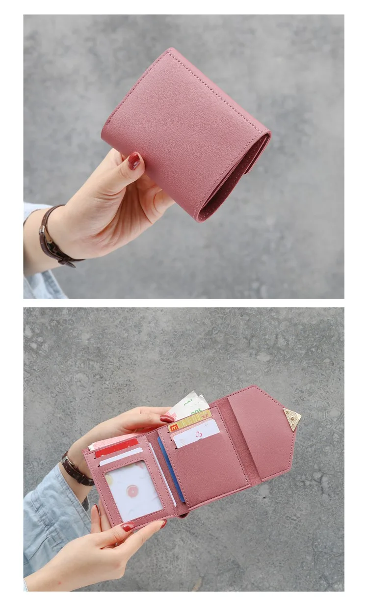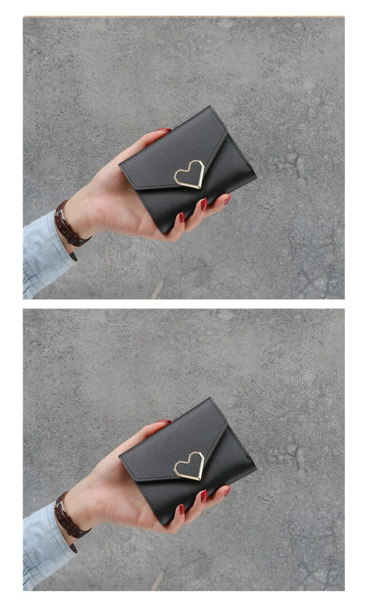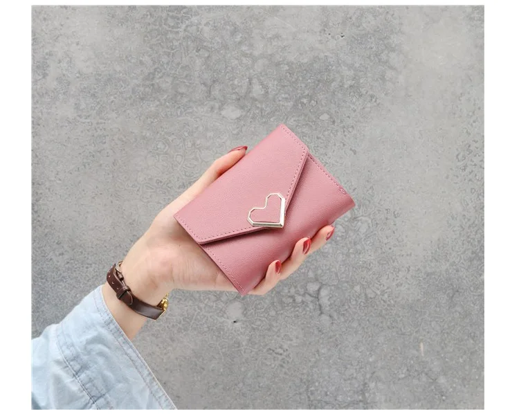 Describe:Women Purse Small Candy Color Short Leather Heart Wallet Luxury Brand Famous Mini Female Fashion Wallets Credit Card Holder.