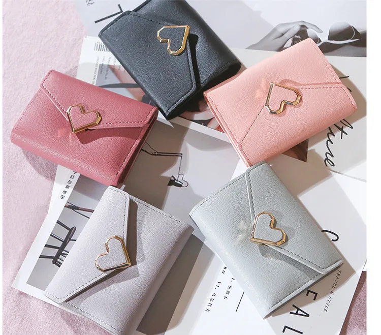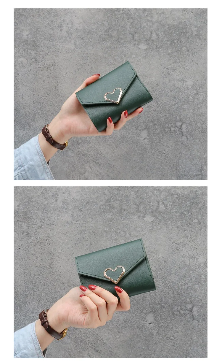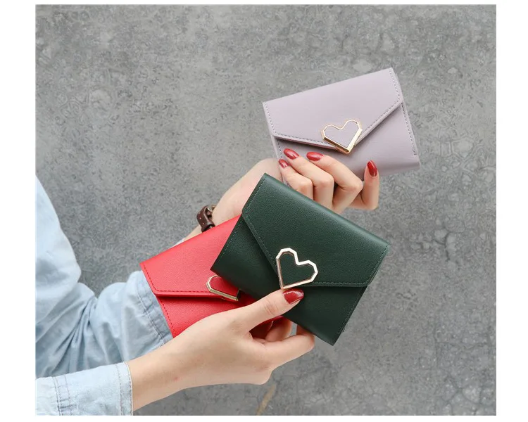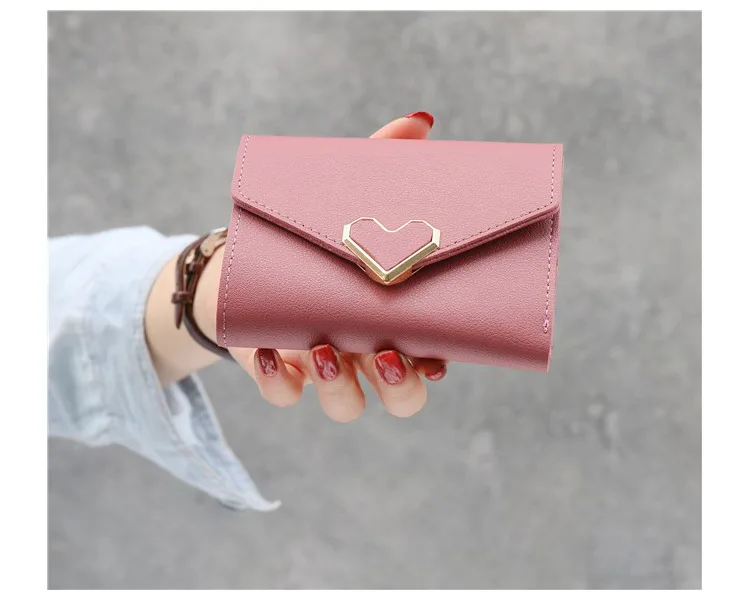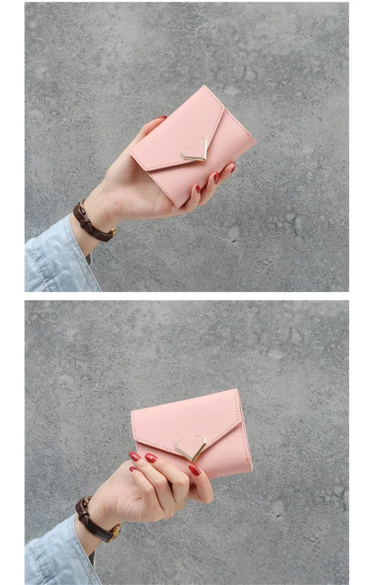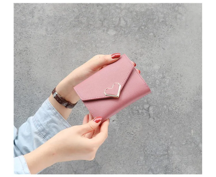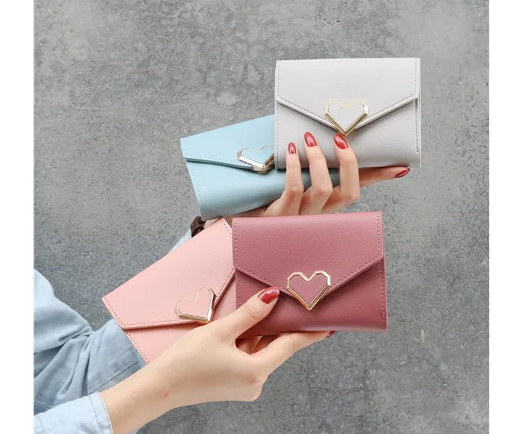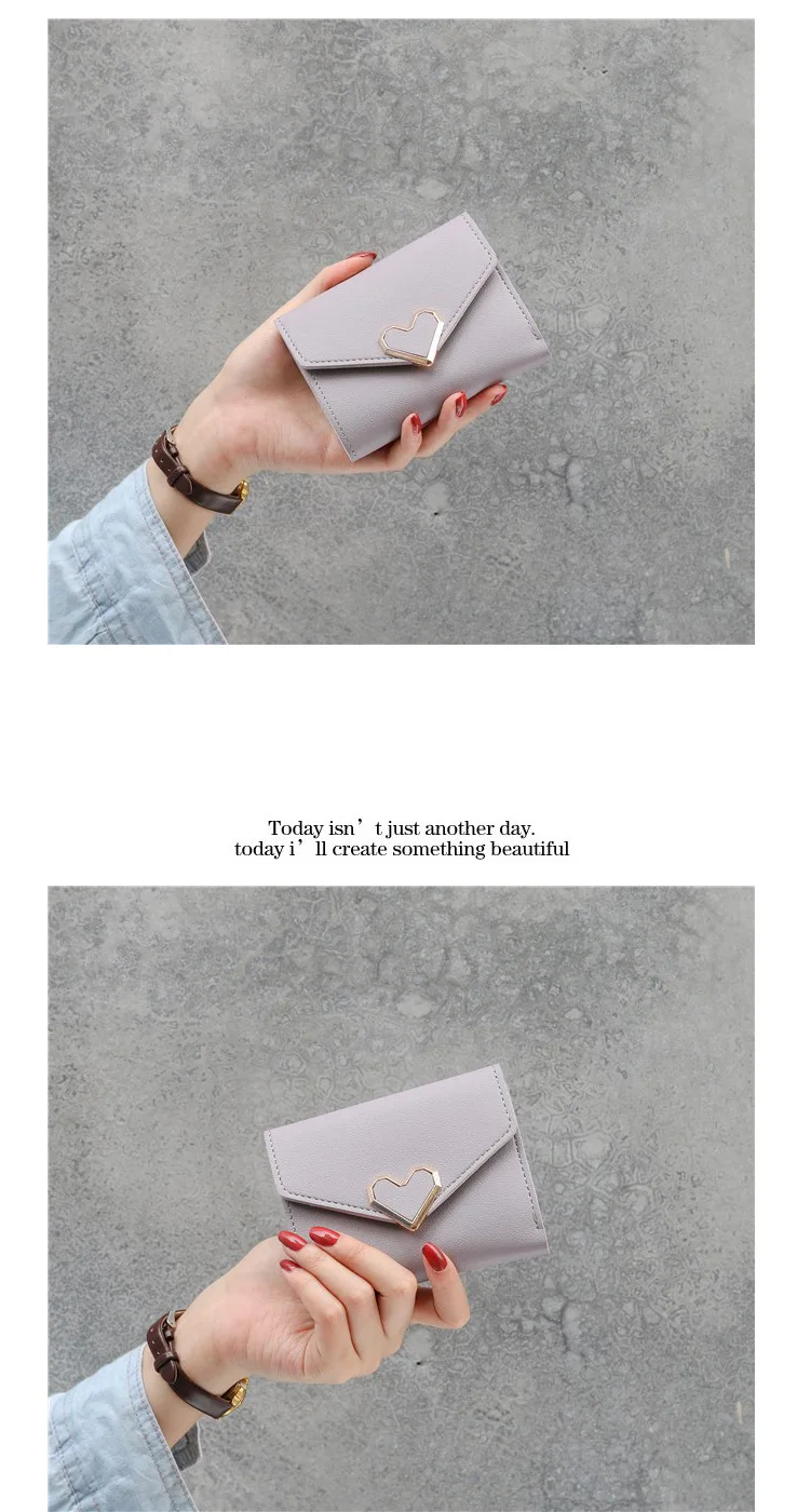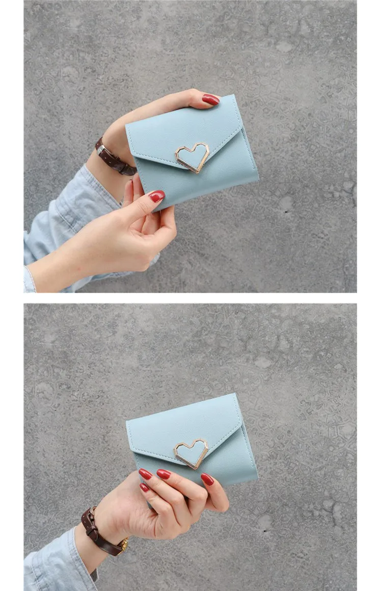 Women Purse Small Candy Color Short Leather Heart Wallet Luxury Brand Famous Mini Female Fashion Wallets Credit Card Holder