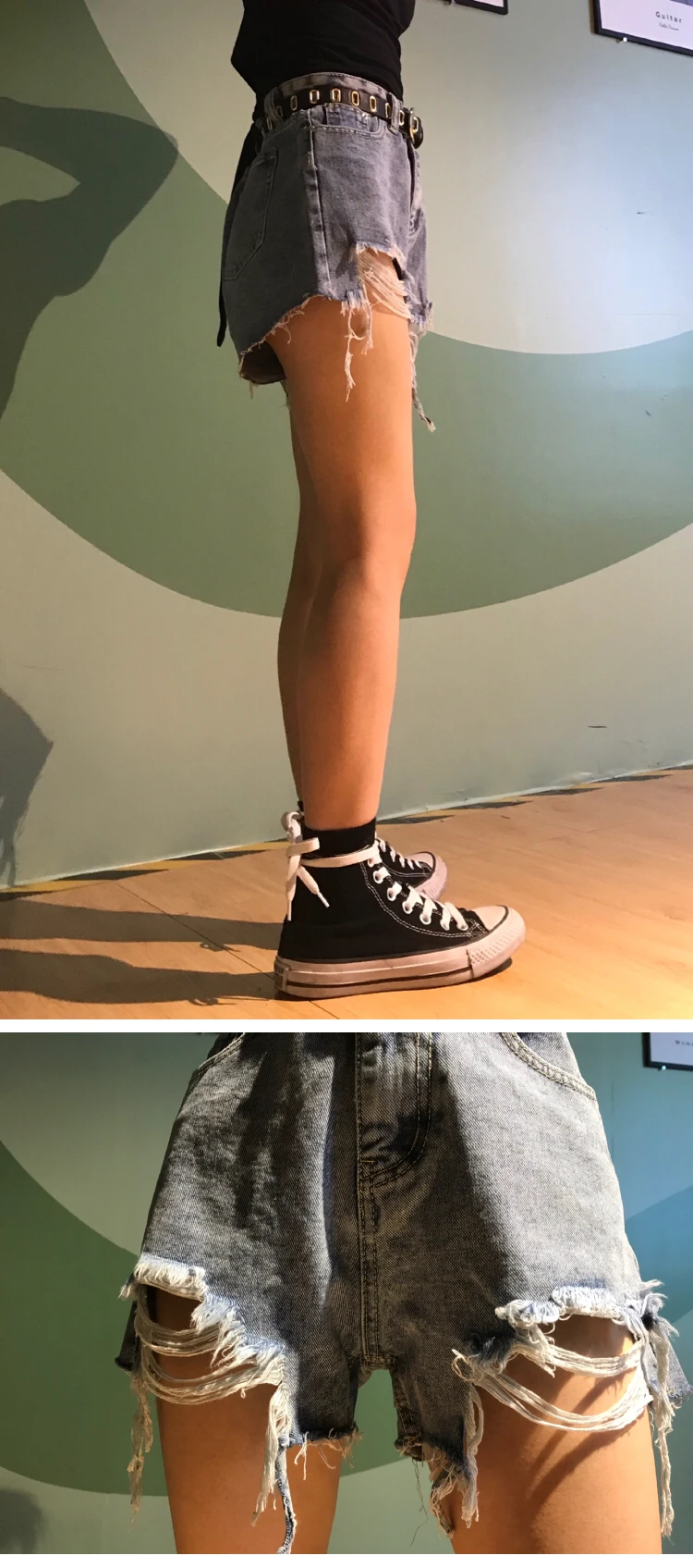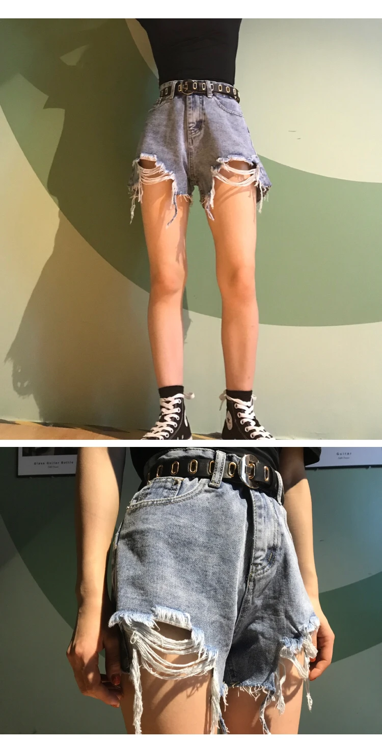 Women's High Waist Denim Shorts Ripped Hollow Out Hole Streetwear Plus Size S-5XL Black Blue Jean Shorts 2021 New Women Shorts
