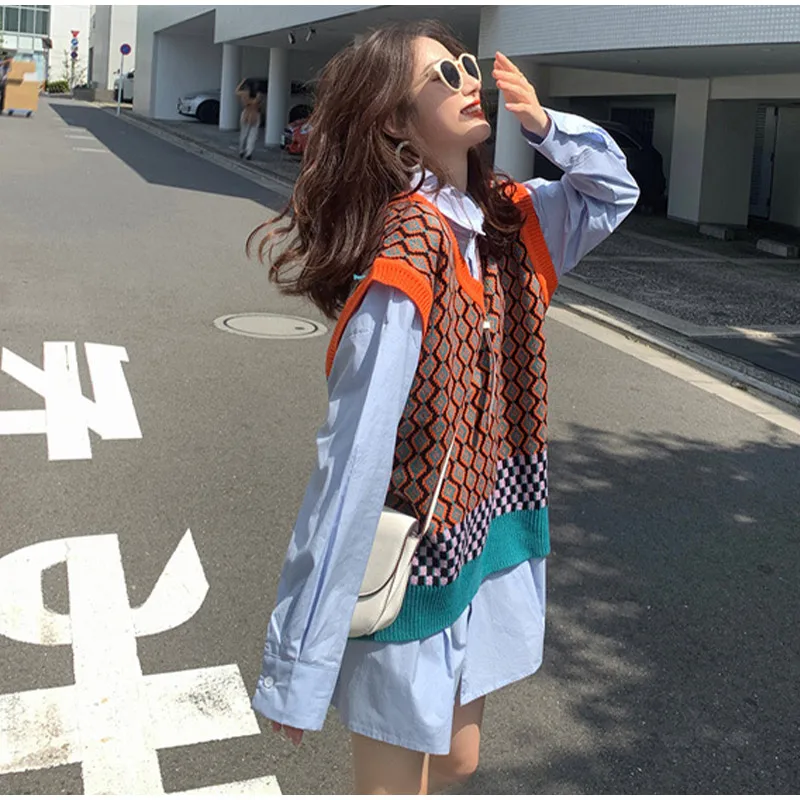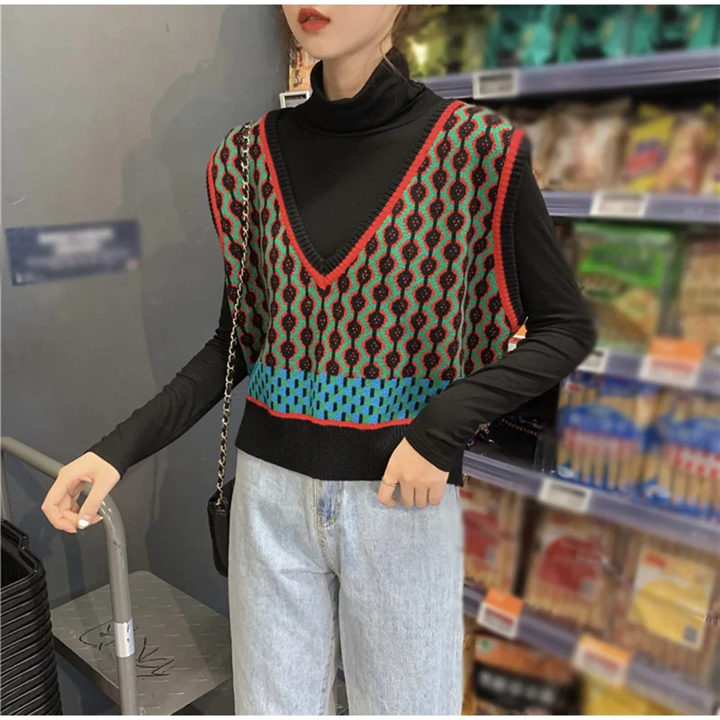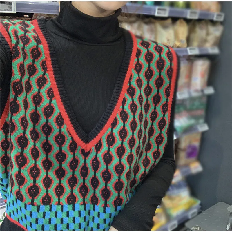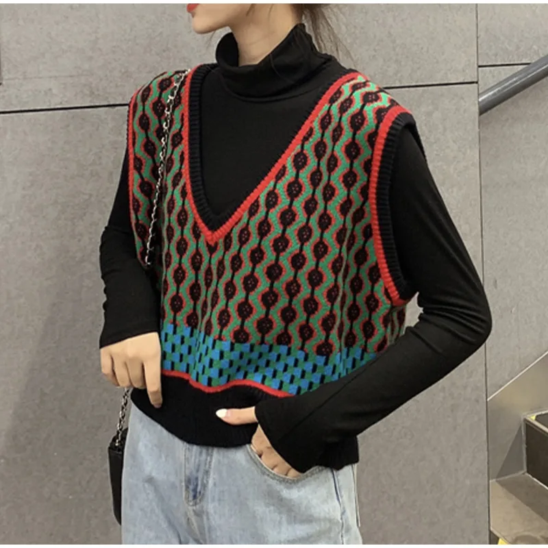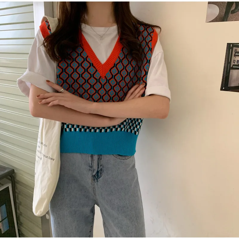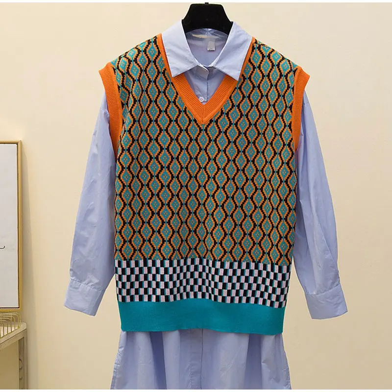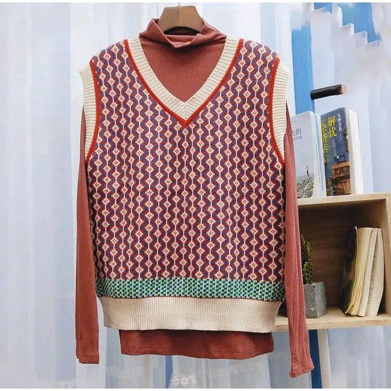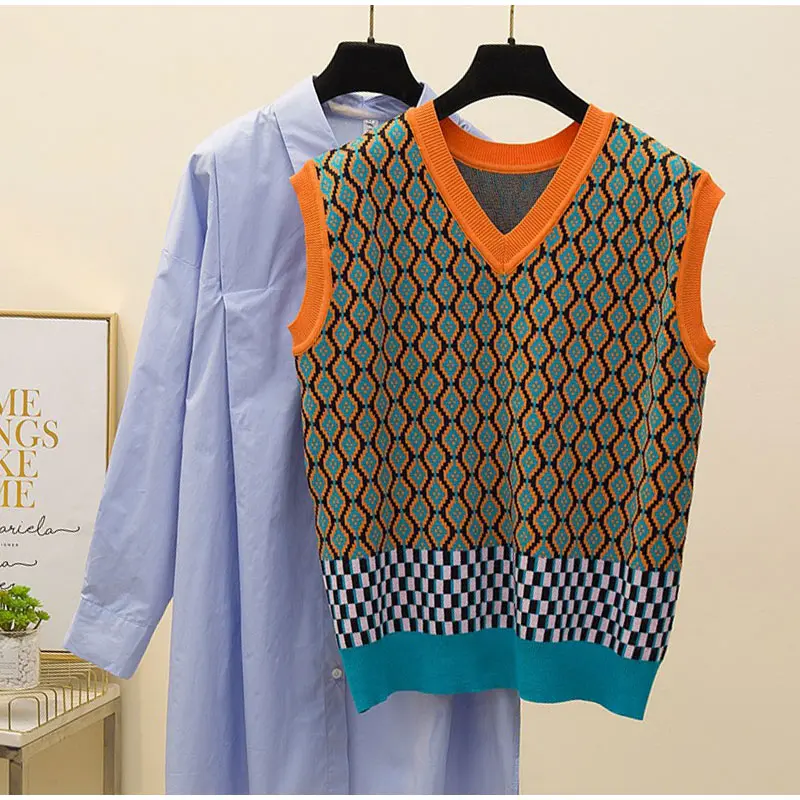 Women's Argyle Knitted Sweater Vest V-neck Loose Sleeveless Vintage Female Vests 2021 Spring Autumn Girls Sweet Tops Clothes HFC0979 SIZE NOTE: Please compare the detail sizes with yours before you buy!!! (2.54cm = 1inch) All are measured by hand, so please allow 2-3 cm mistake .