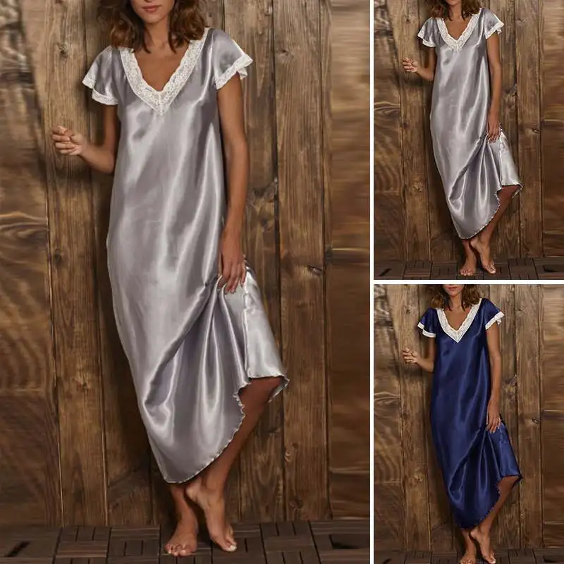 Women's Lace Homewear Sets 2021 Summer Casual V-Neck Underwear Fashion Midi Sleepwear Female Solid Spliced Nightgowns Oversized