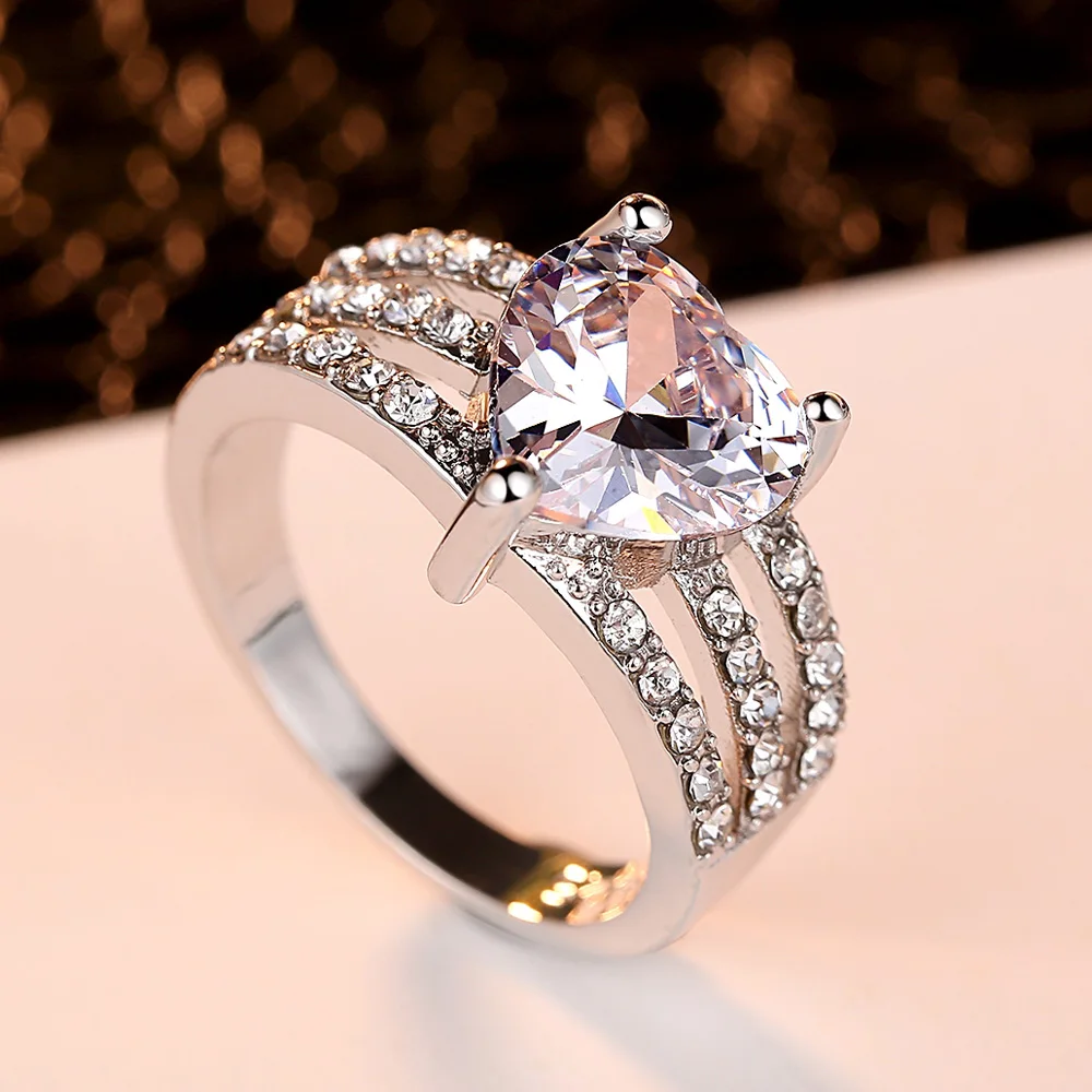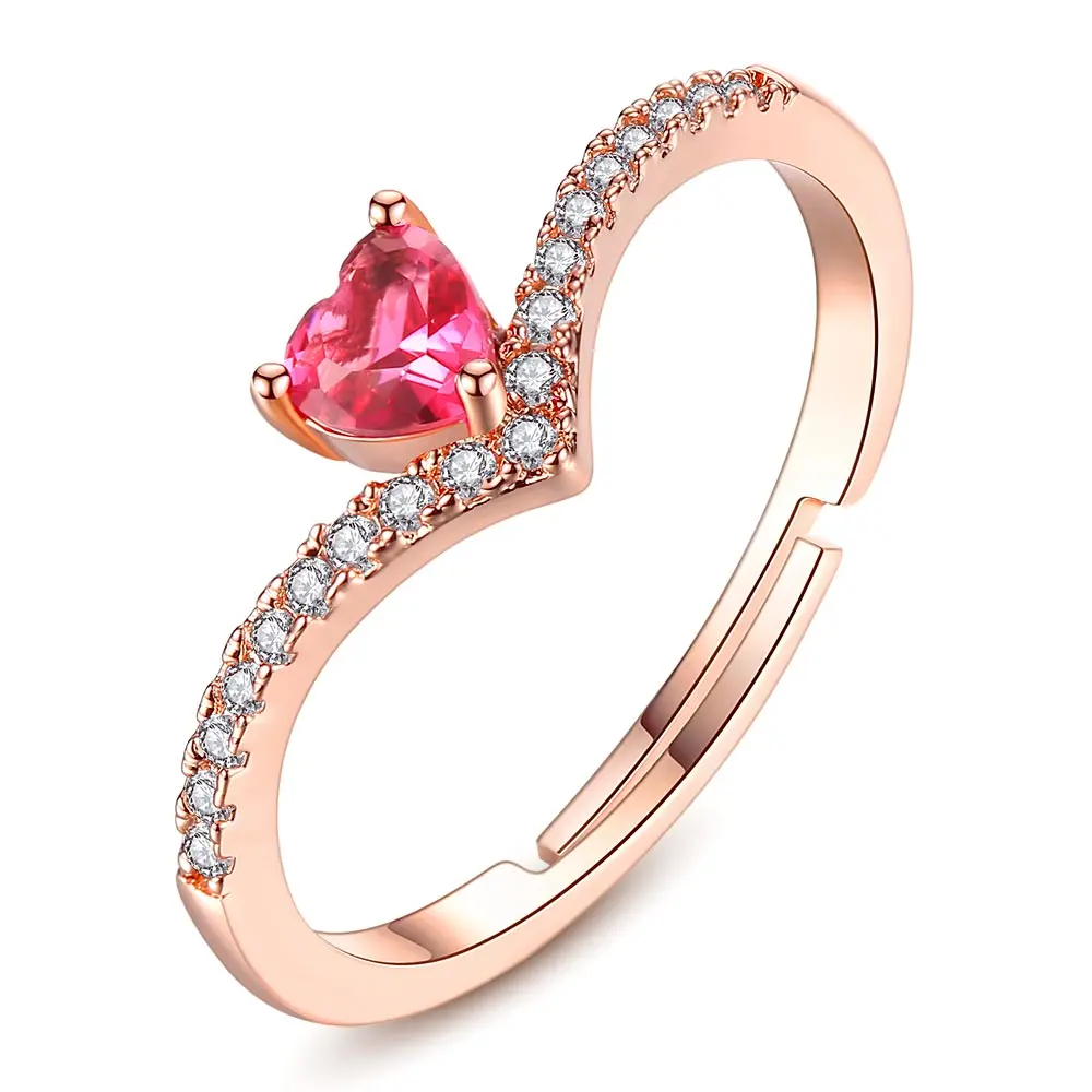 Women's Ring Fashion Rose Gold Color AAA + Pink CZ Adjustable Hand Heart Shaped Ring Banquet Engagement Ring For Girlfriend