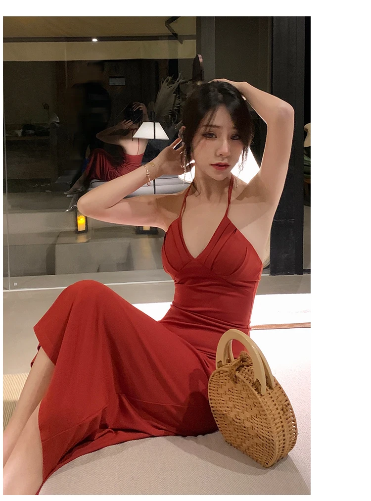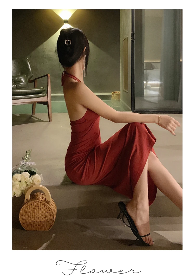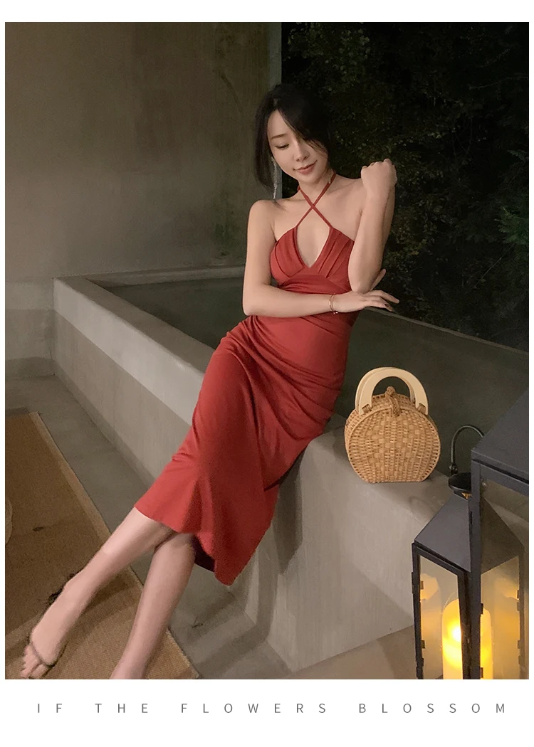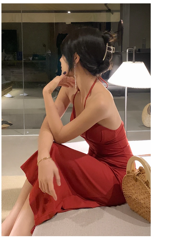Women's Summer Sexy Elegant Bodycon Halter Midi Dress Sleeveless Backless Slim Sling Vestidos Female Fashion Party Clothes