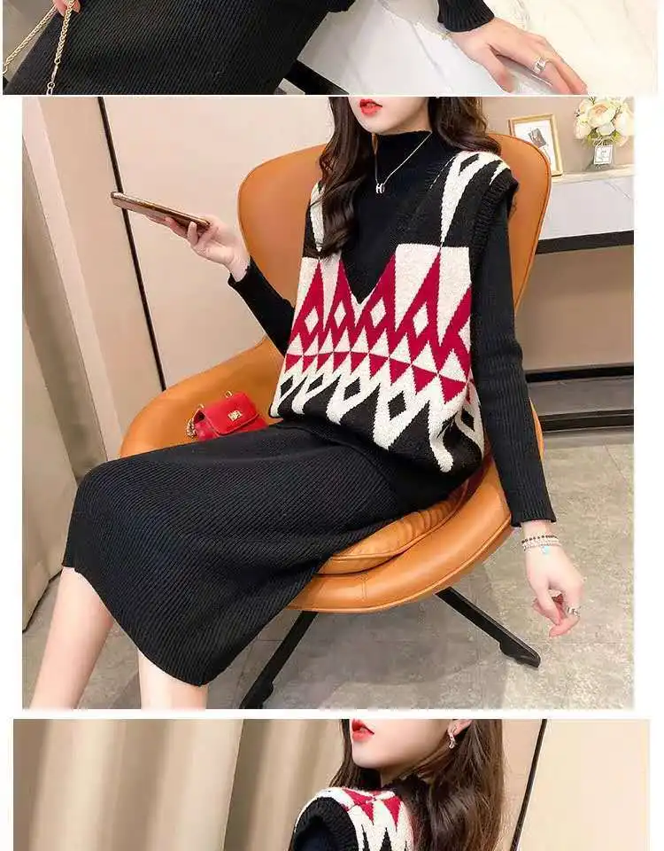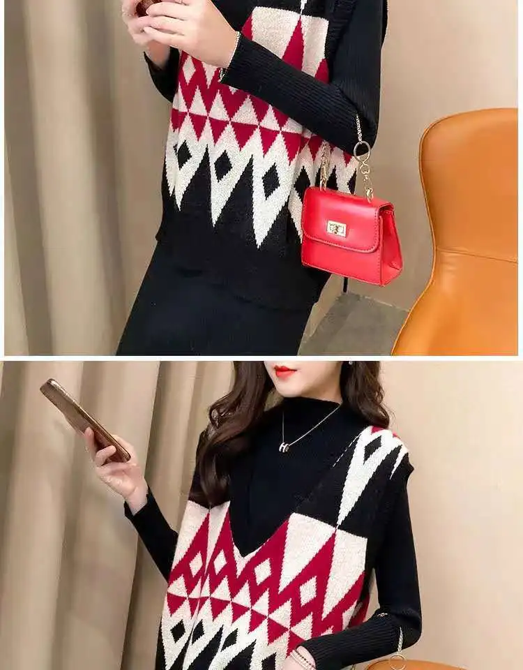 Women's Sweater Vest Spring/Autumn Korean Sweet Style Diamond-Shaped Puttern Sleeveless Oversize Waistcoat Single-Breasted Coat