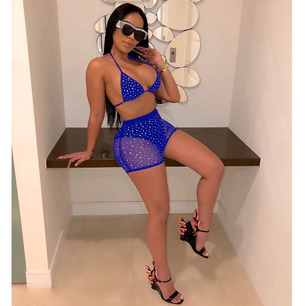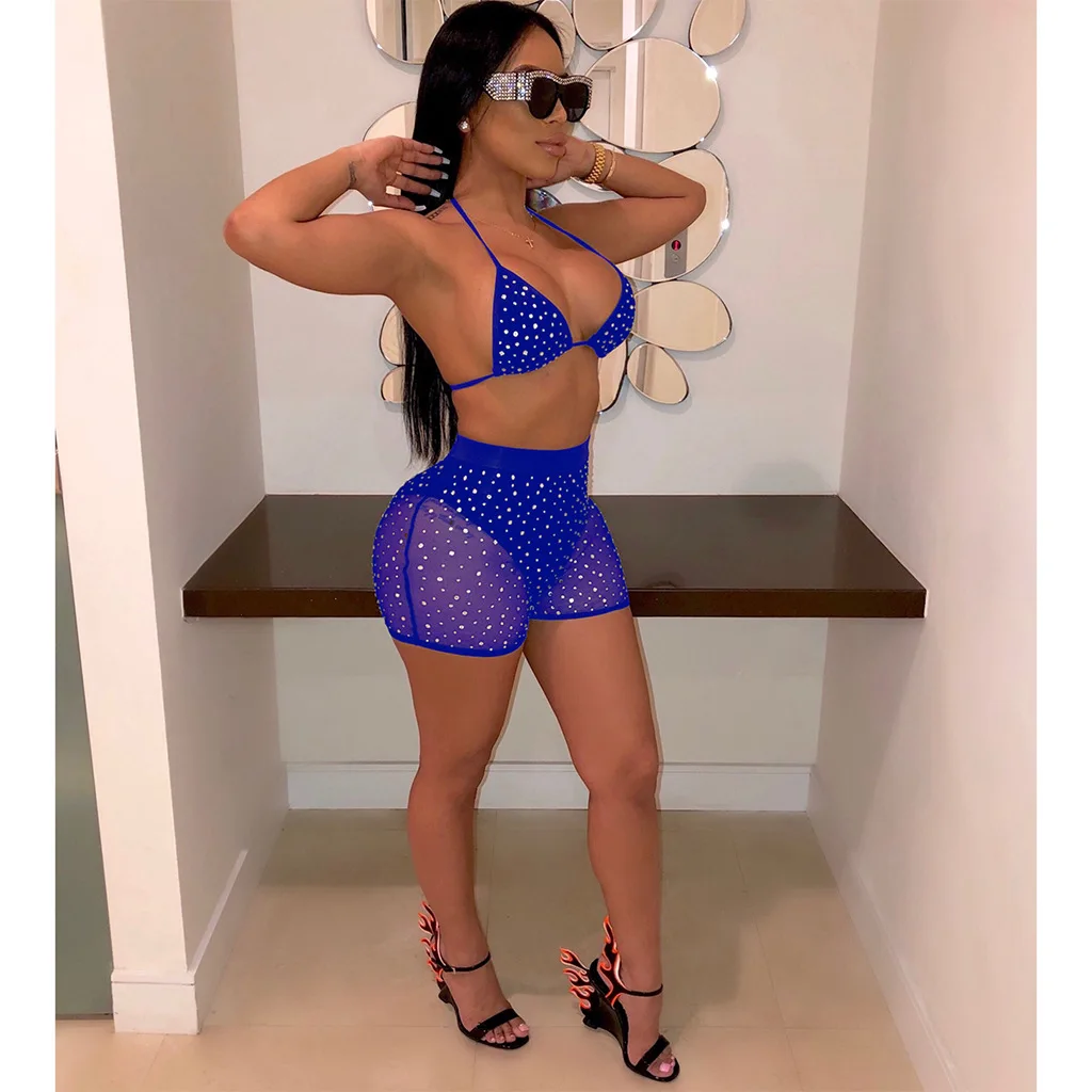 Women Shiny Glitters Sparkles Bikini Set Summer Crystal Push-up High Waist Bikini Set Bathing Suit Swimsuit Two Piece Swimwear