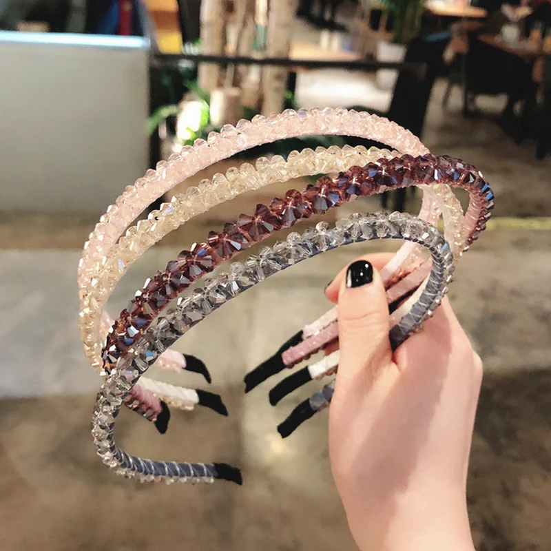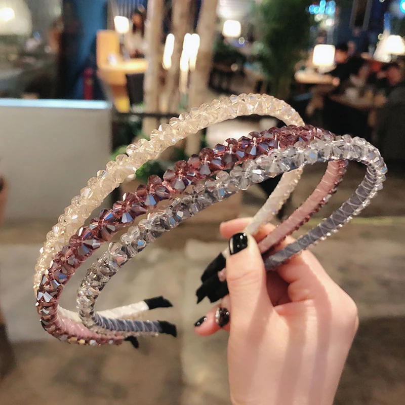 Women Shiny Luxury Rhinestone Hairbands Non-slip Bezel Colorful Diamond Hair Hoop Hair Accessories for Women Crystal Headbands