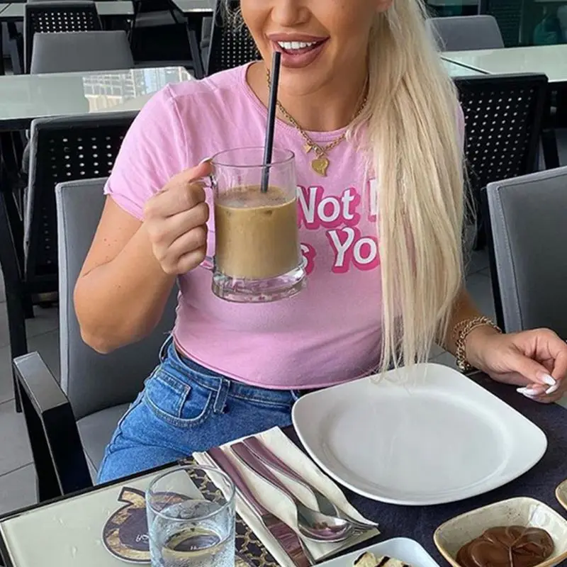 Women Short Sleeve Slim T-Shirt Its Not Me Its You Letters Pink Kawaii Crop Top