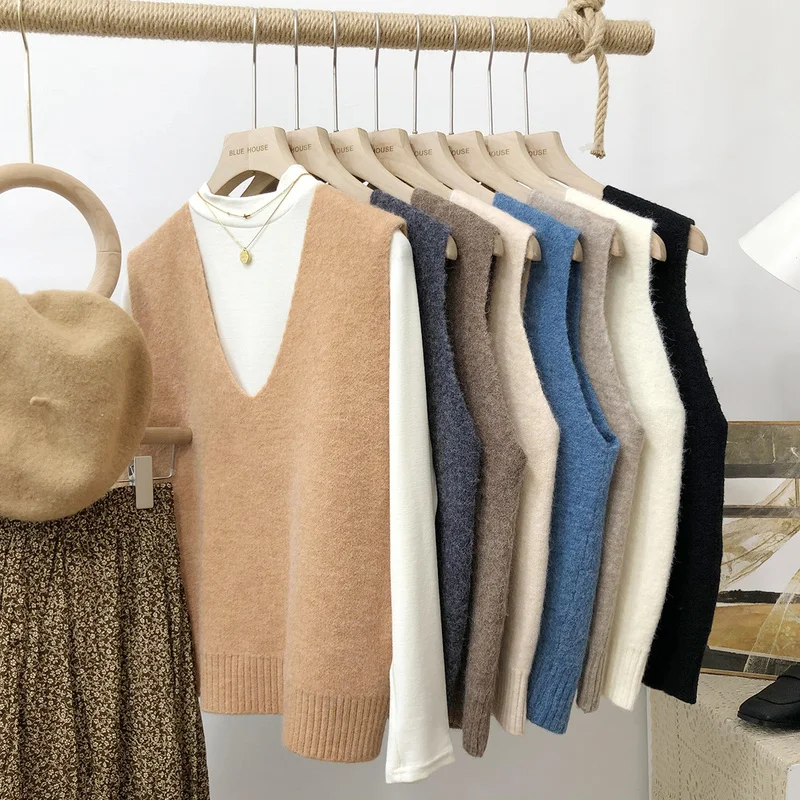 Women Sweater Vest Female Outwear Womens Tops Soft High Elasticity Japanese Style Simple Design All-match Knitted Casual Ulzzang
