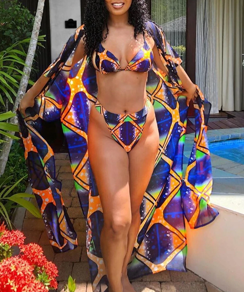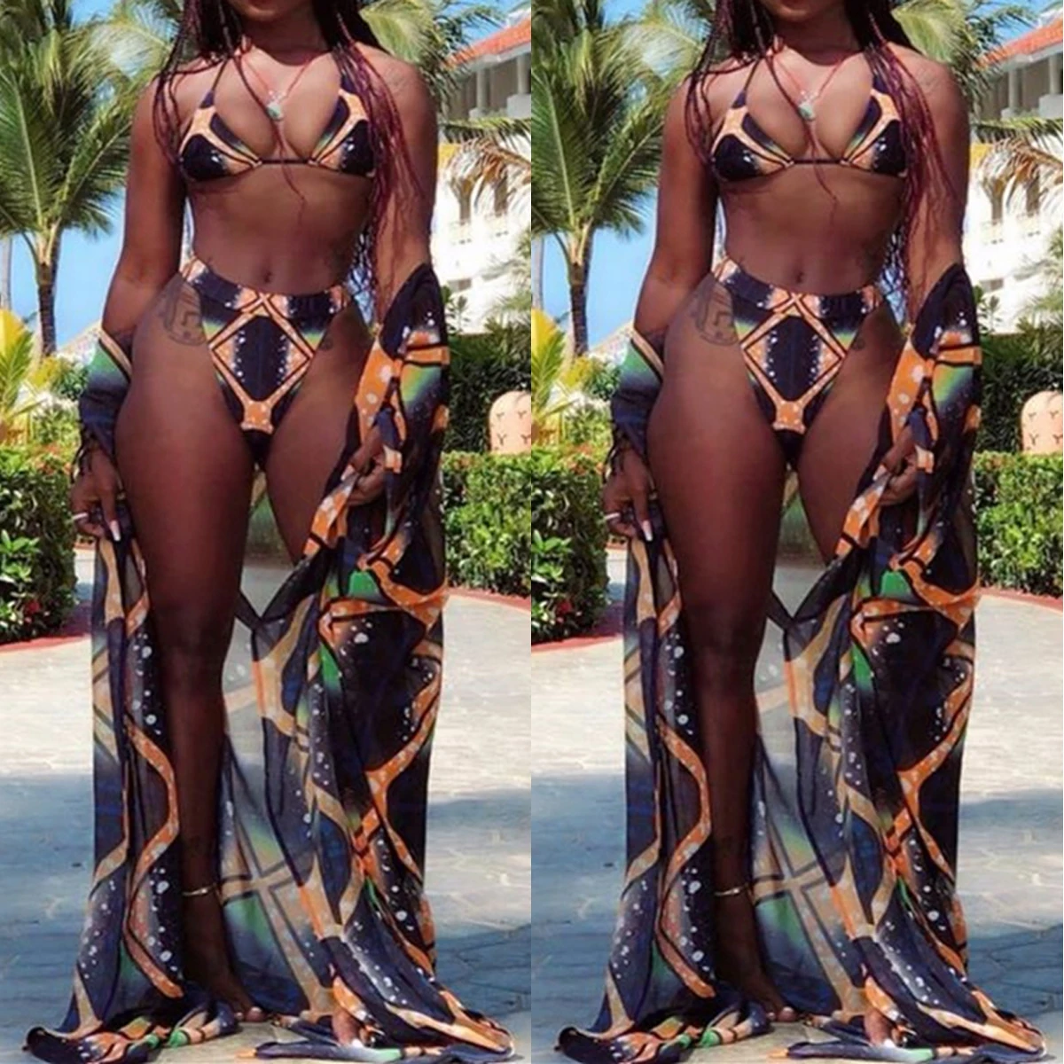 Women Swimwear Two Piece Set Bikini Set Chiffon Printing Cover Up Bathing Suit Summer Swimsuit Ladies Biquini Brazilian Bikinis
