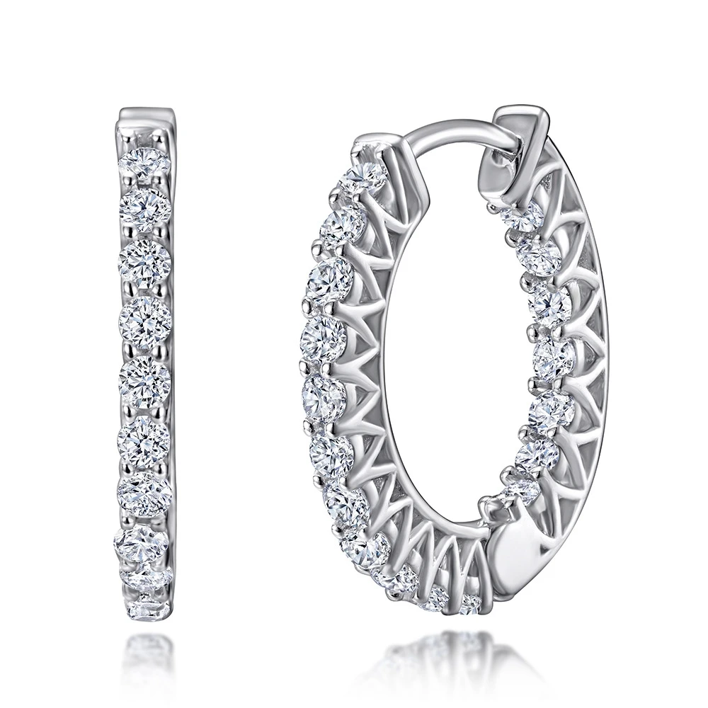 Wong Rain 925 Sterling Silver Created Moissanite Gemstone Wedding Party Fashion Hoop Earrings For Women Fine Jewelry Wholesale