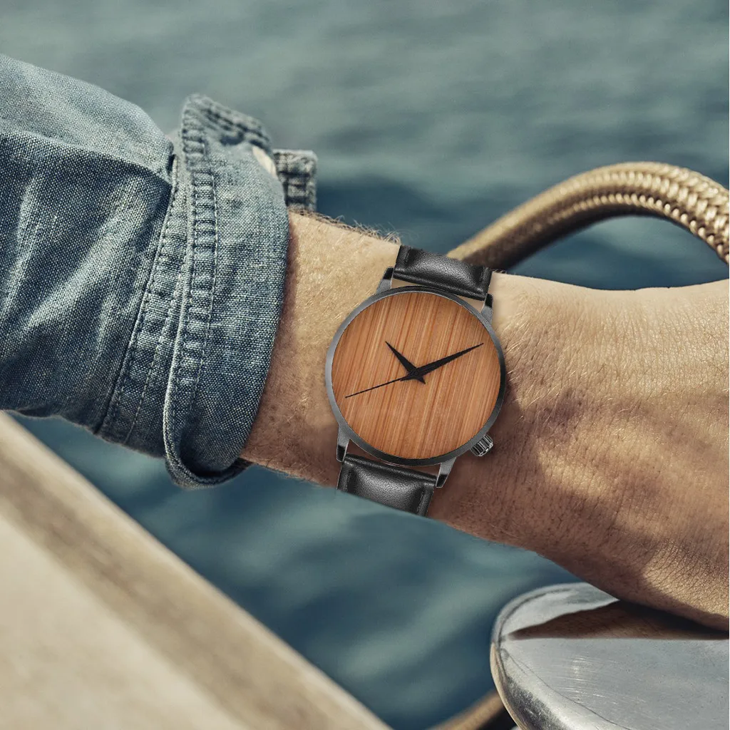 Wooden Dial Ladies Watches Simple Brand Genuine Leather Strap Watches Woman Men Clock Montre Femme Relogio Feminino Relojes