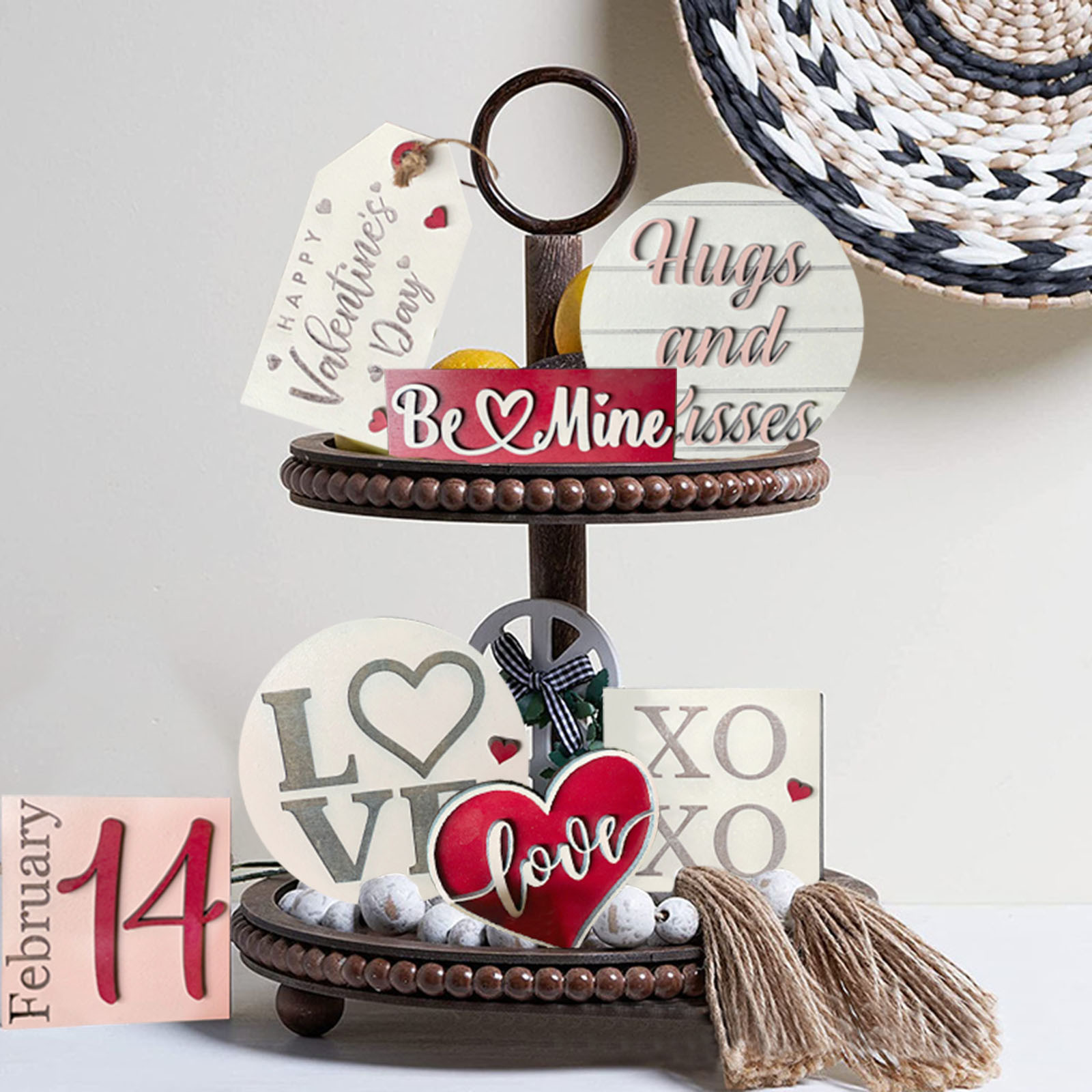 Wooden Rustic Tiered Tray Items Holiday Decoration Ornament For Home Table House Room Valentines Day Decoration 4pcs/7pcs/set