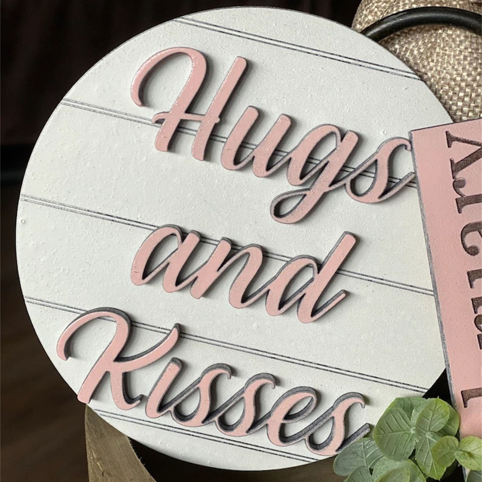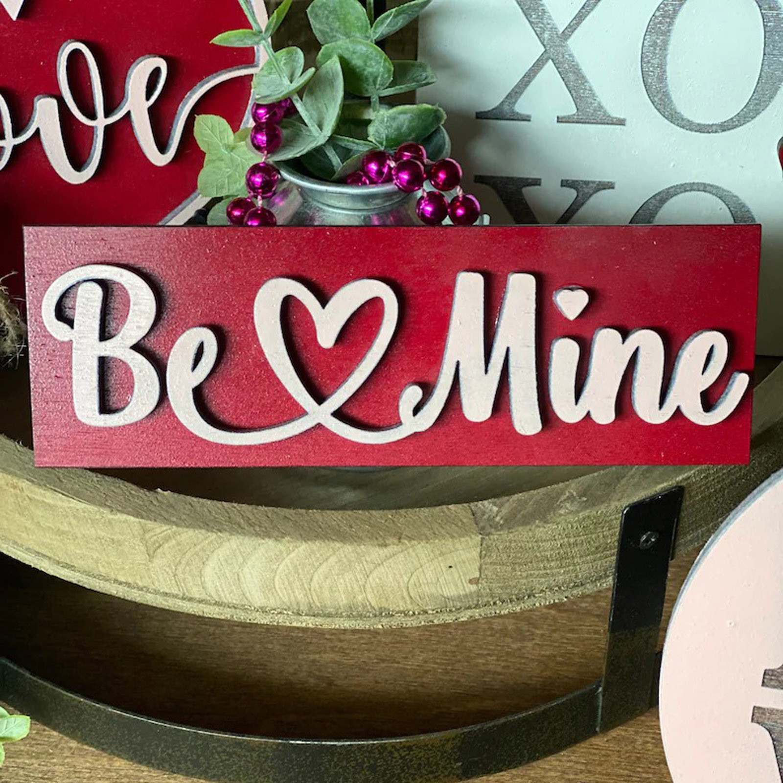 This cute set includes 7 wooden Valentine's Day signs and does not include tiered trays.