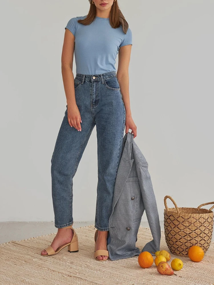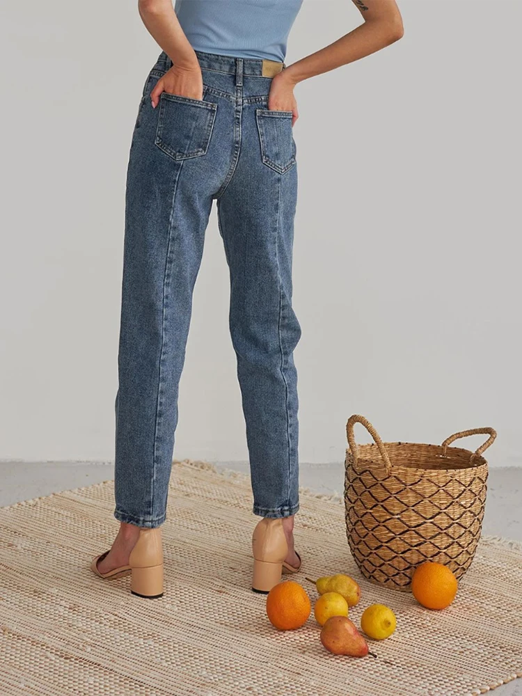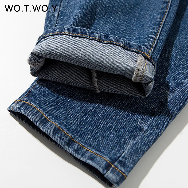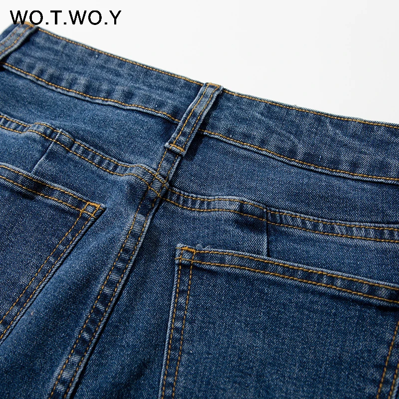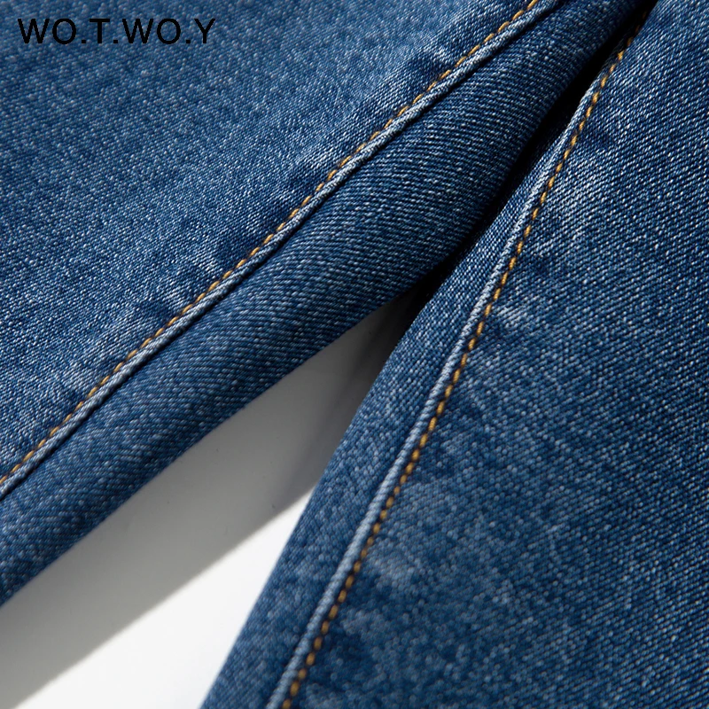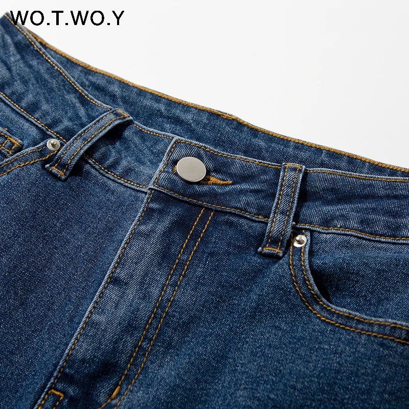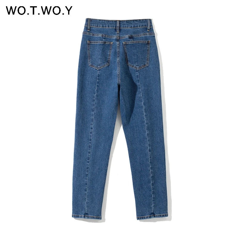 WOTWOY High Waist Casual Patchwork Jeans Women Straight Denim Pants Female Zipper Fly Cotton Blue Trousers Ladies Vaqueros 2021