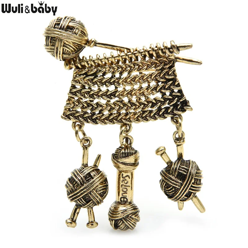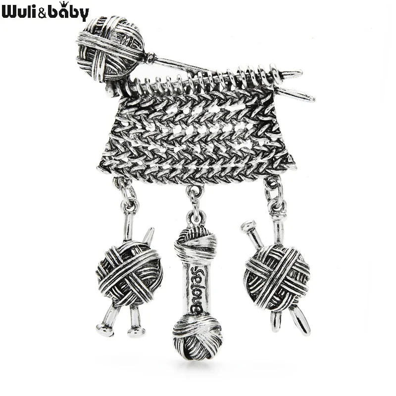 Wuli&baby Knit Sweater Brooches For Women Wool Line Needle Accessories Design Brooch Pins Gifts