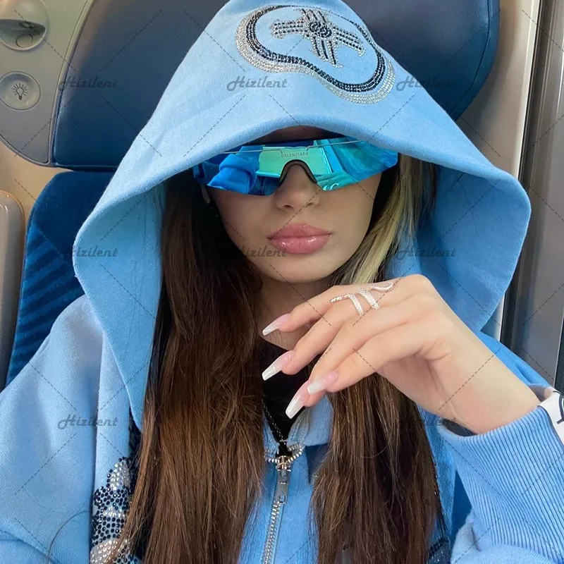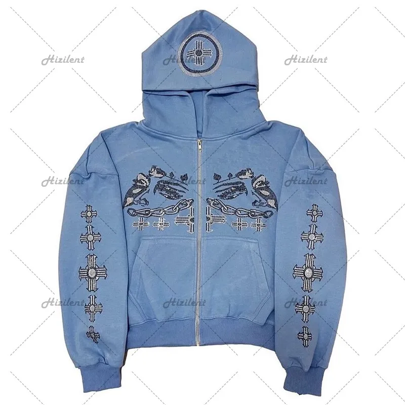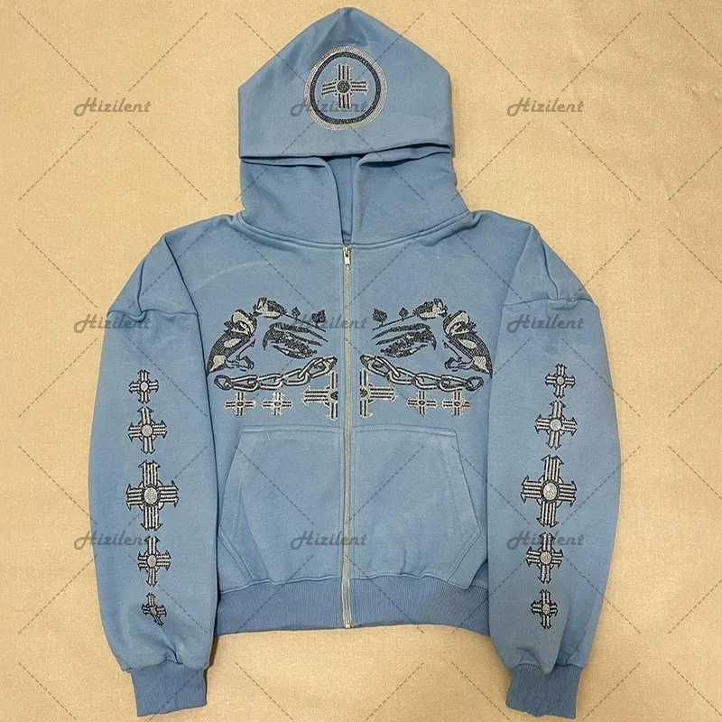 Y2k jacket Men's hoodies emo Zip Hoodie Rhinestone demon goth Sweatshirt Sport Coat Pullover Gothic Long Sleeve Oversized hoodie