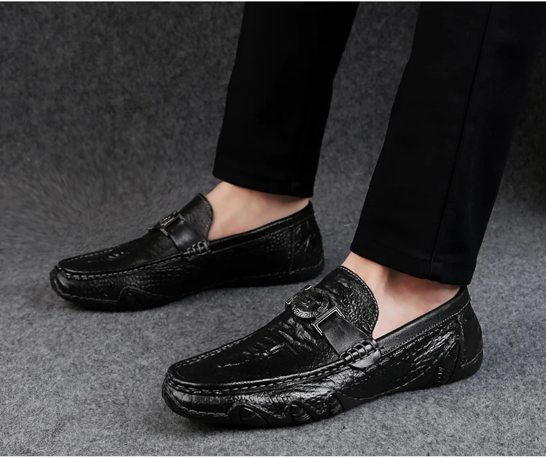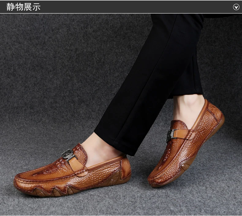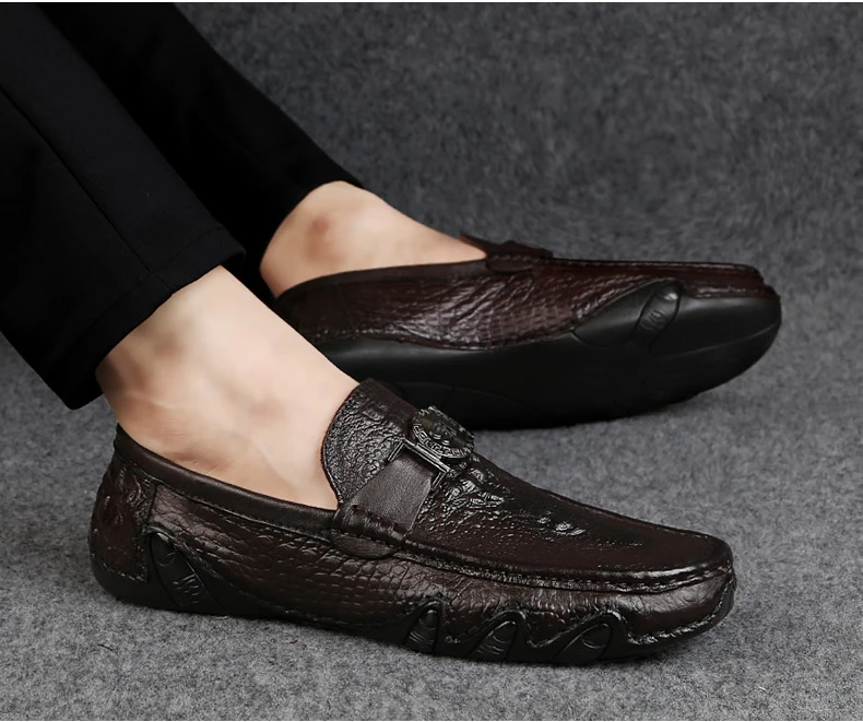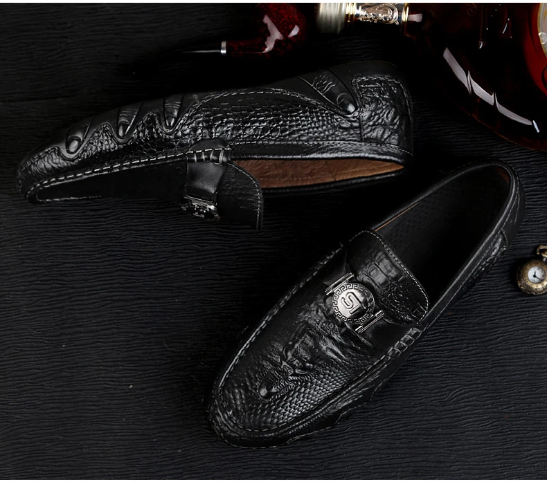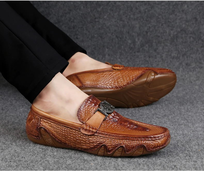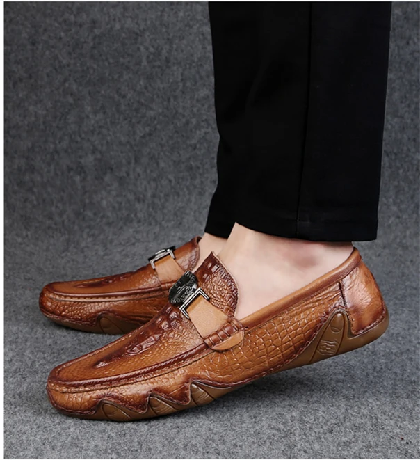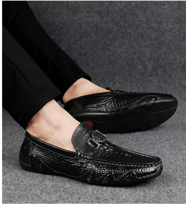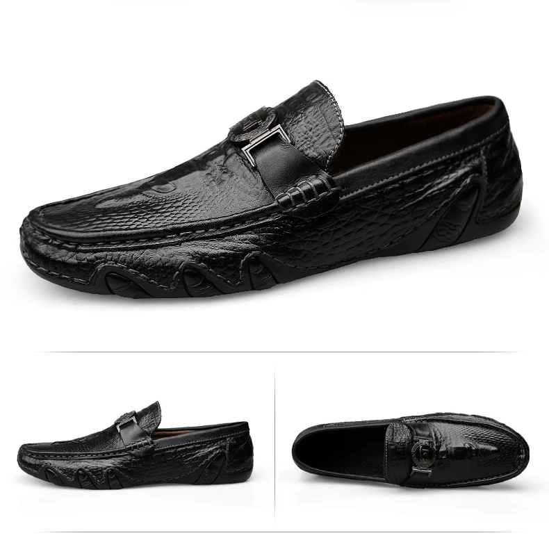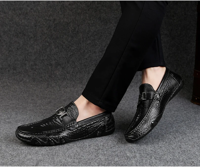 YEINSHAARS Crocodile Skin Loafer Shoes Men Genuine Leather Slip-on Moccasins Handmade Man Casual Shoes Drive Walk Luxury Leisure