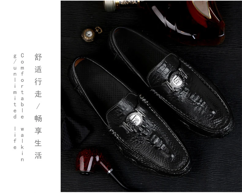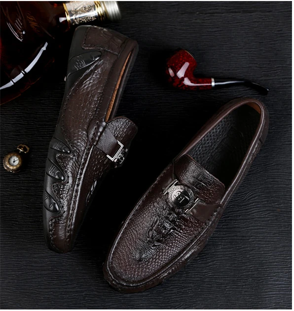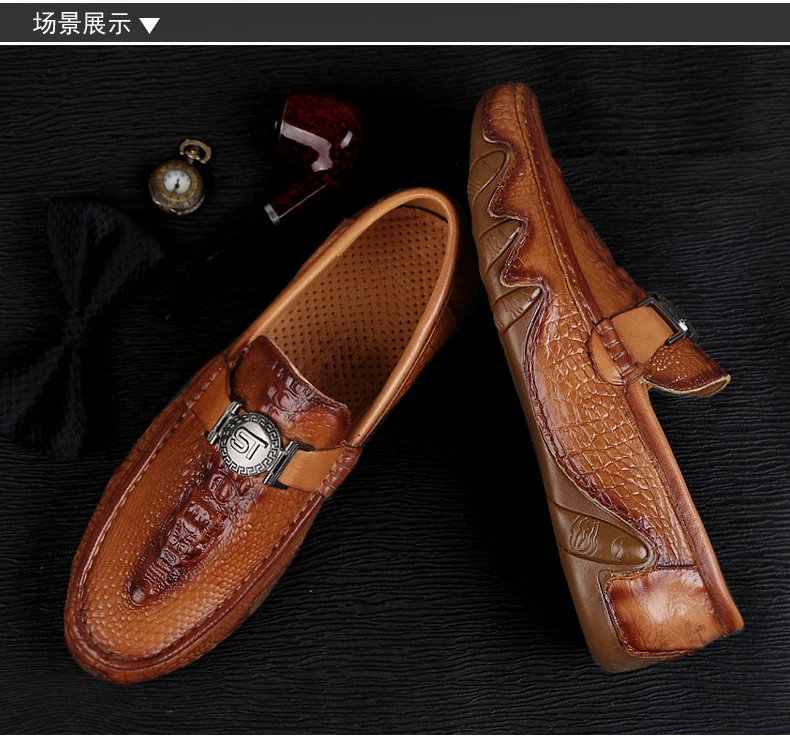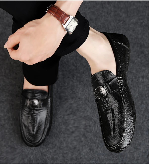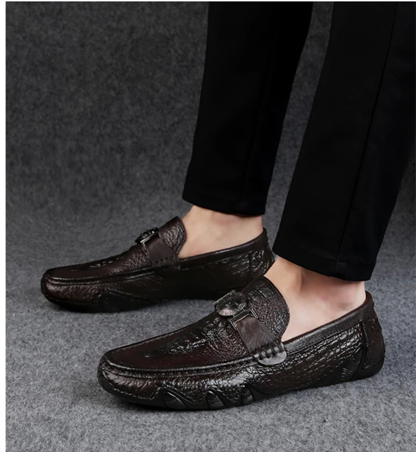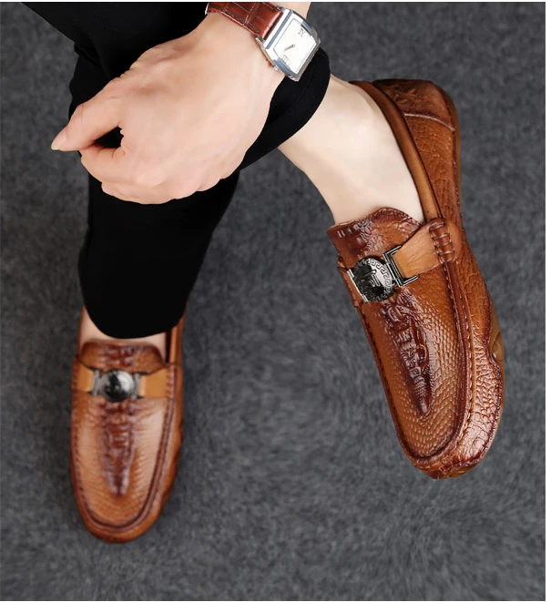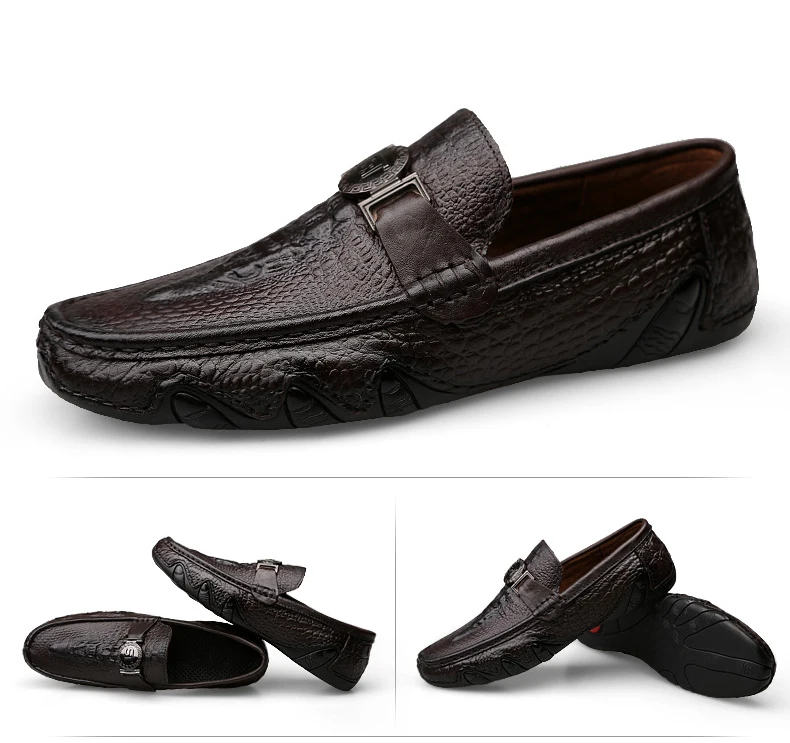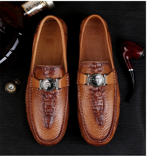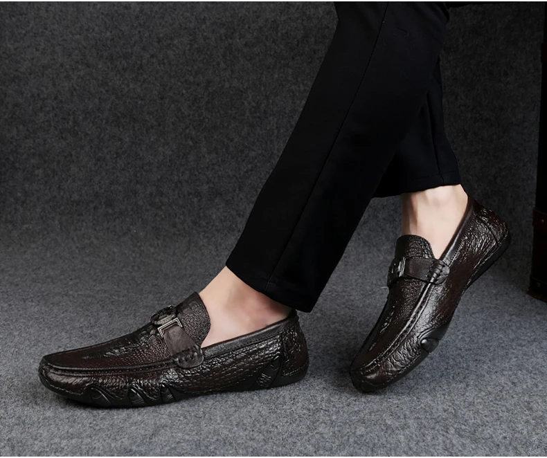 YEINSHAARS Crocodile Skin Loafer Shoes Men Genuine Leather Slip-on Moccasins Handmade Man Casual Shoes Drive Walk Luxury Leisure