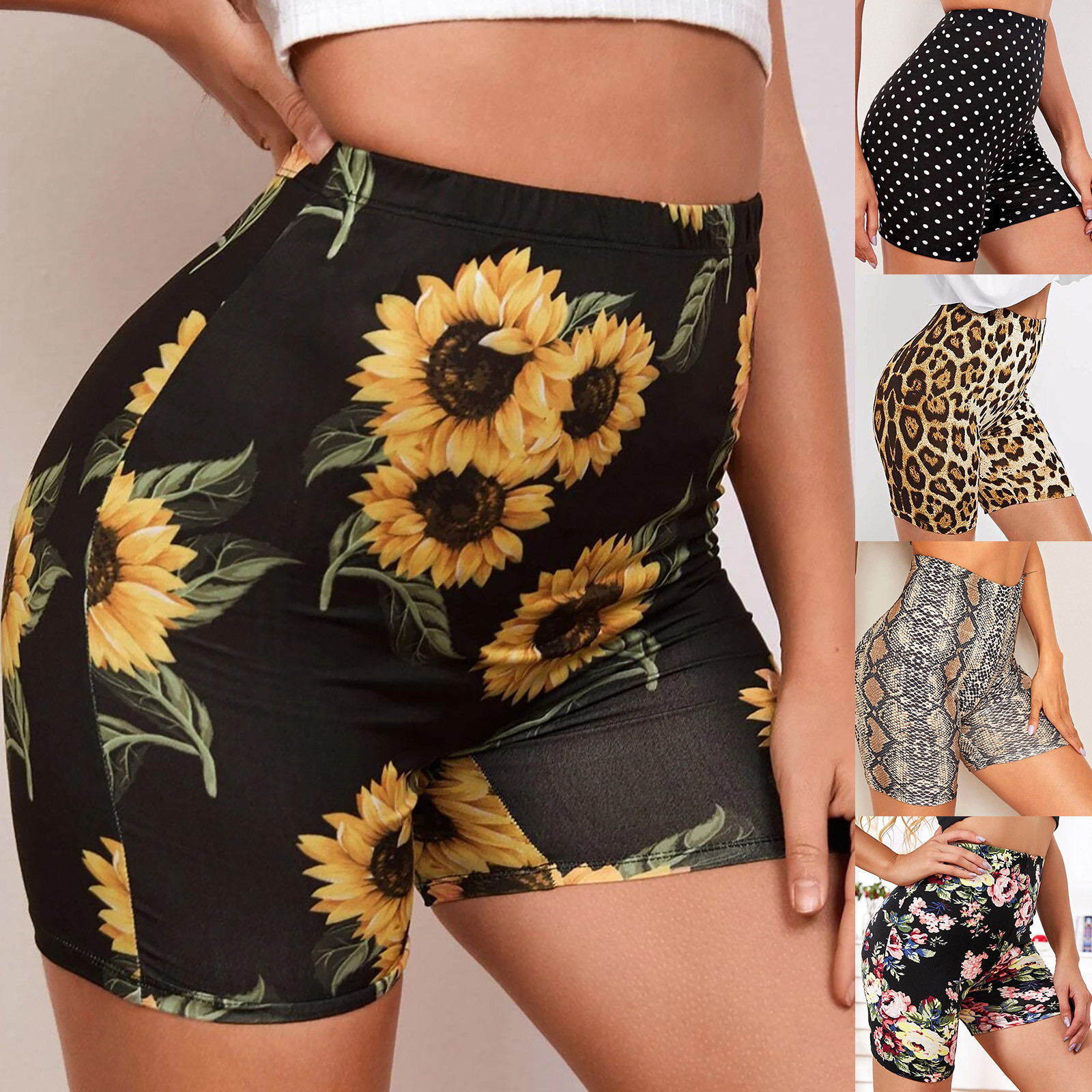 Yoga Shorts 2021 New Women Basic Slip Bike Shorts Compression Workout Leggings Print Yoga Shorts Pants High Waist Pants
