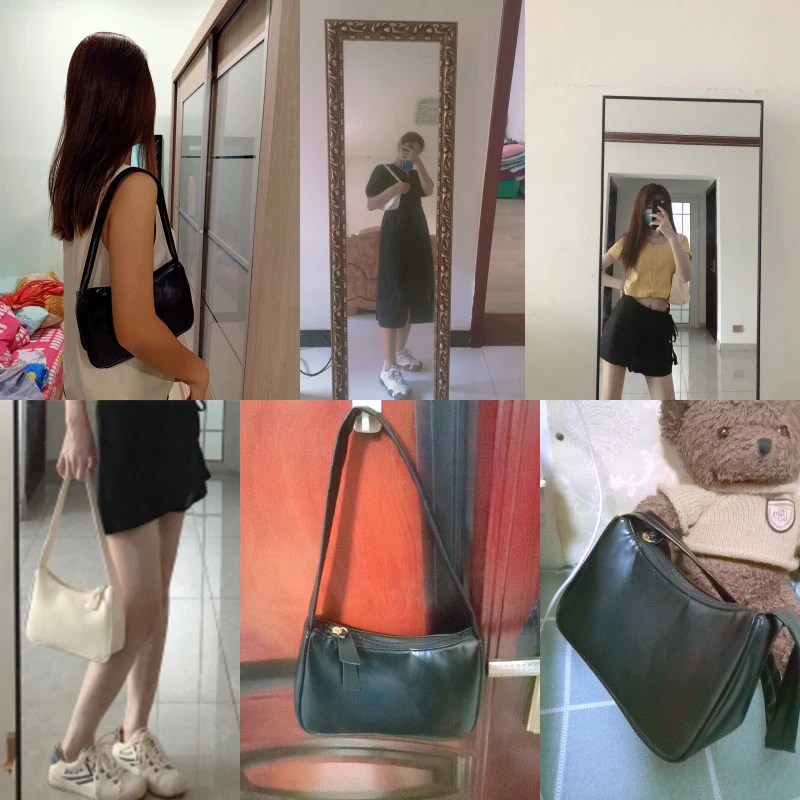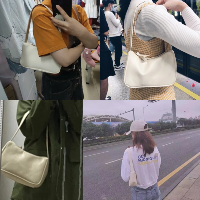 Yogodlns Retro Subaxillary Baguette Bag For Women Fashion Solid Color Shoulder Bag Portable purse Ladies Casual Mini Bag