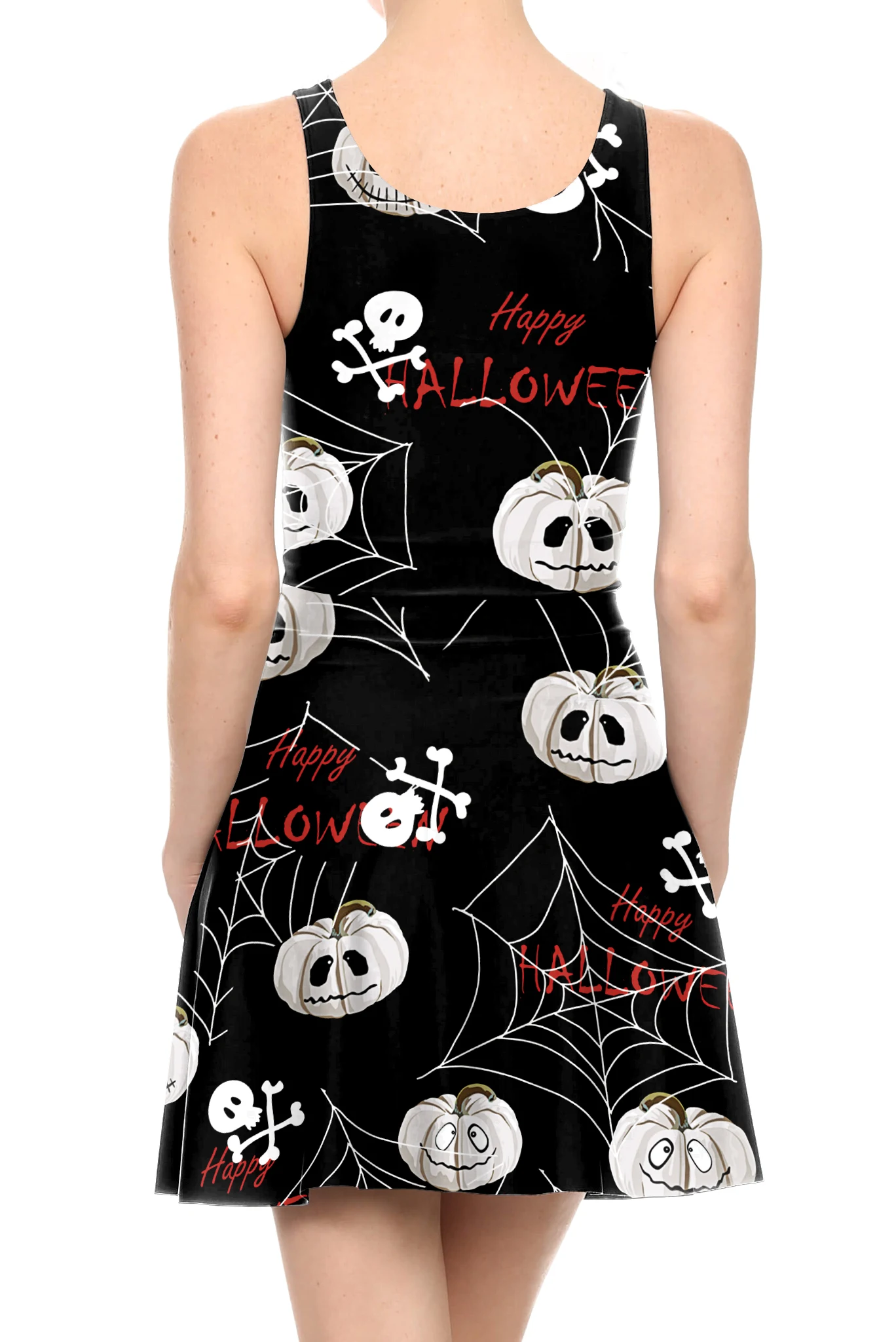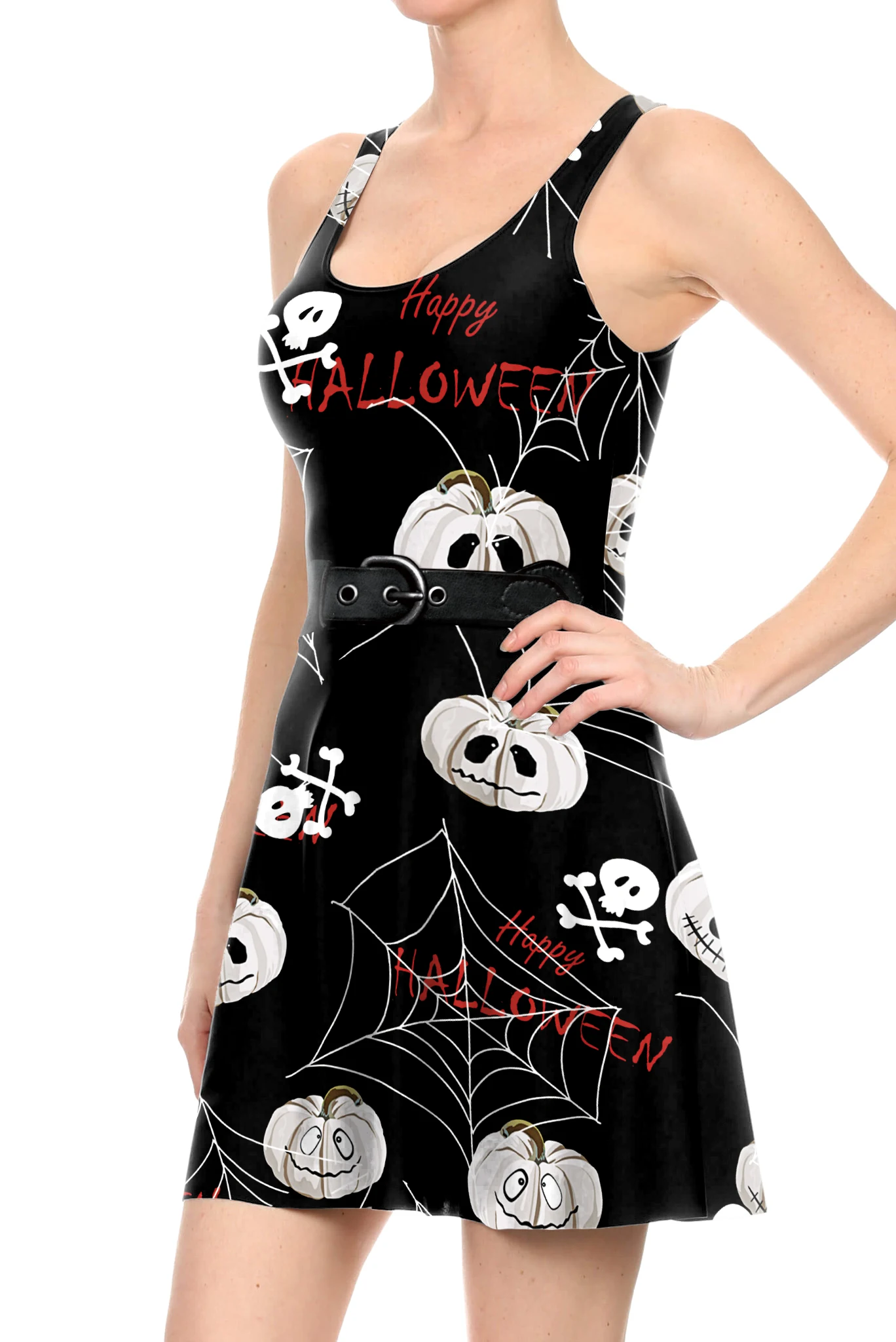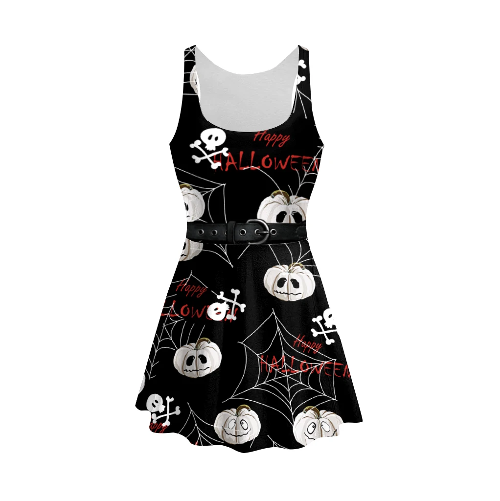 [You're My Secret] Halloween Pleated Dress Gothic Pumpkin Lantern Print Tank Dresses Casual Sleeveless Sexy Clothes