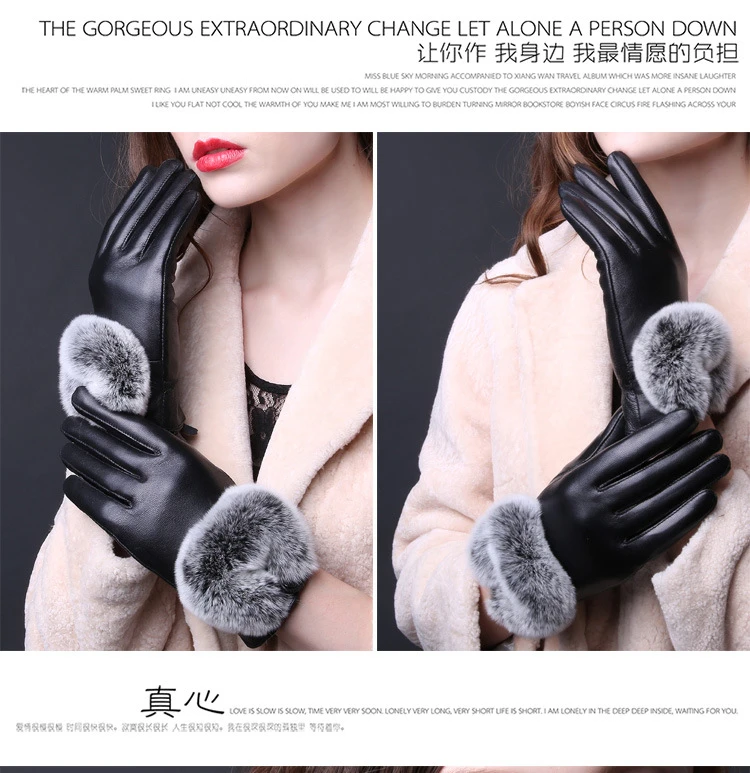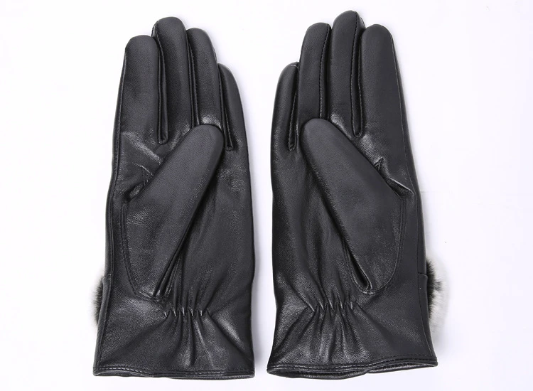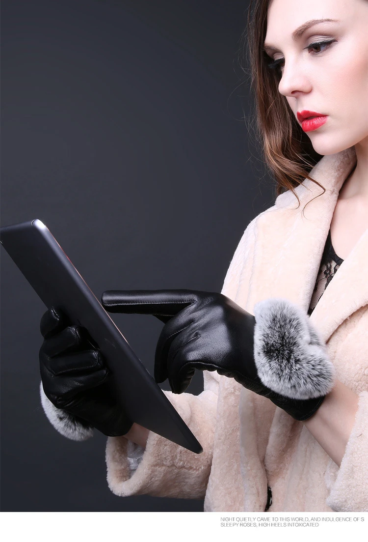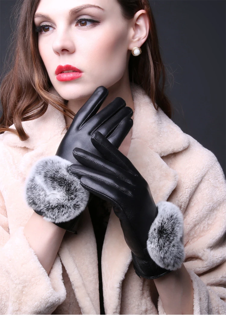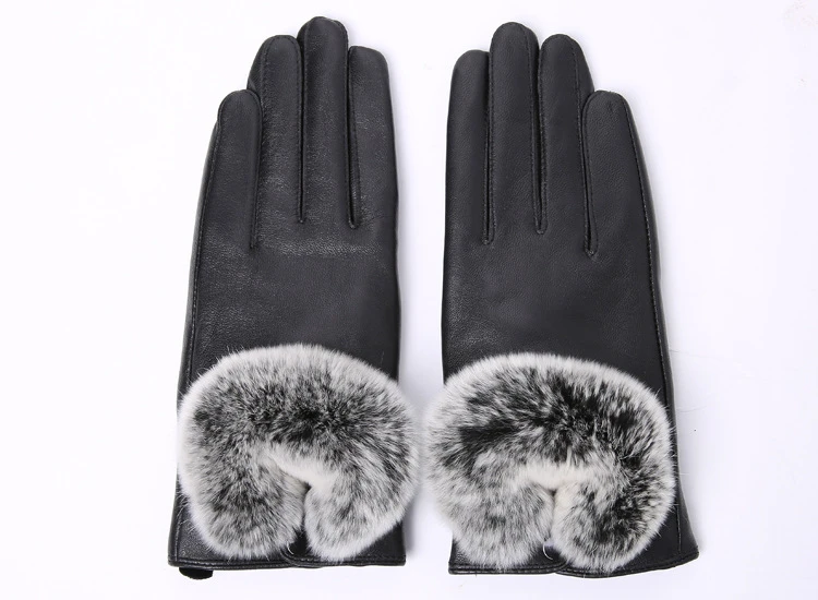 ZDFURS*Genuine Leather Glove Women Warm Fashion Winter Ladies Hand Warmer Gloves With Natural Rabbit Fur Trims