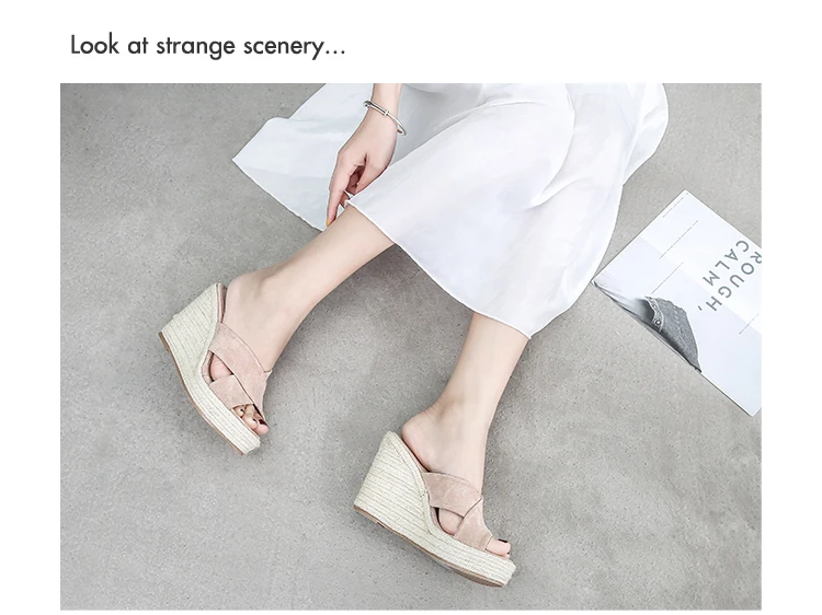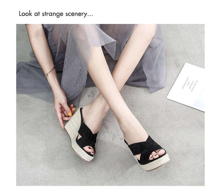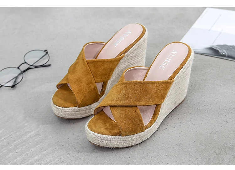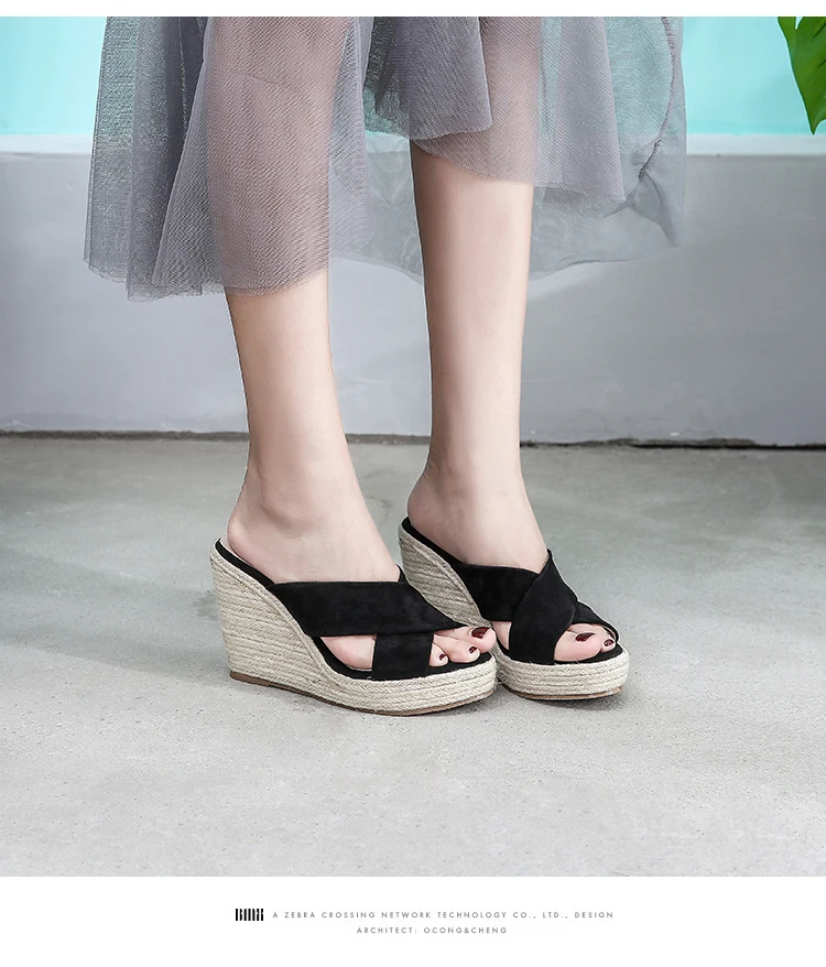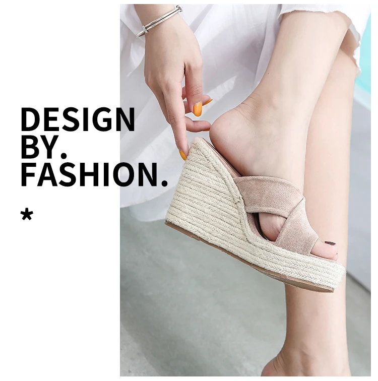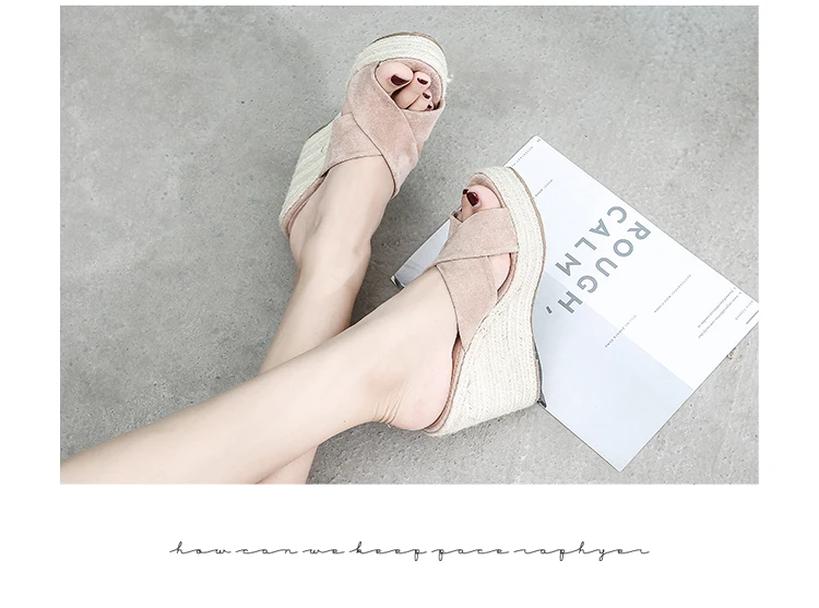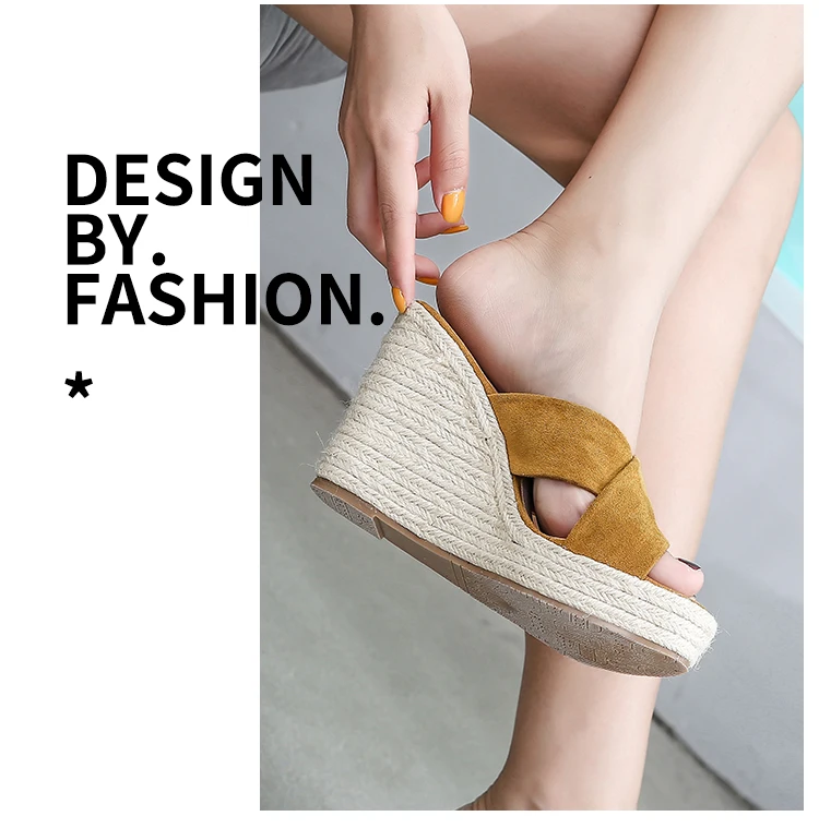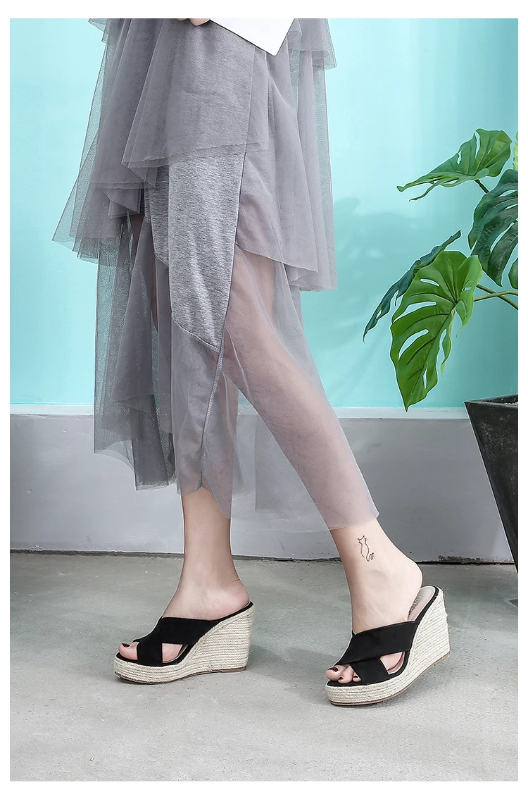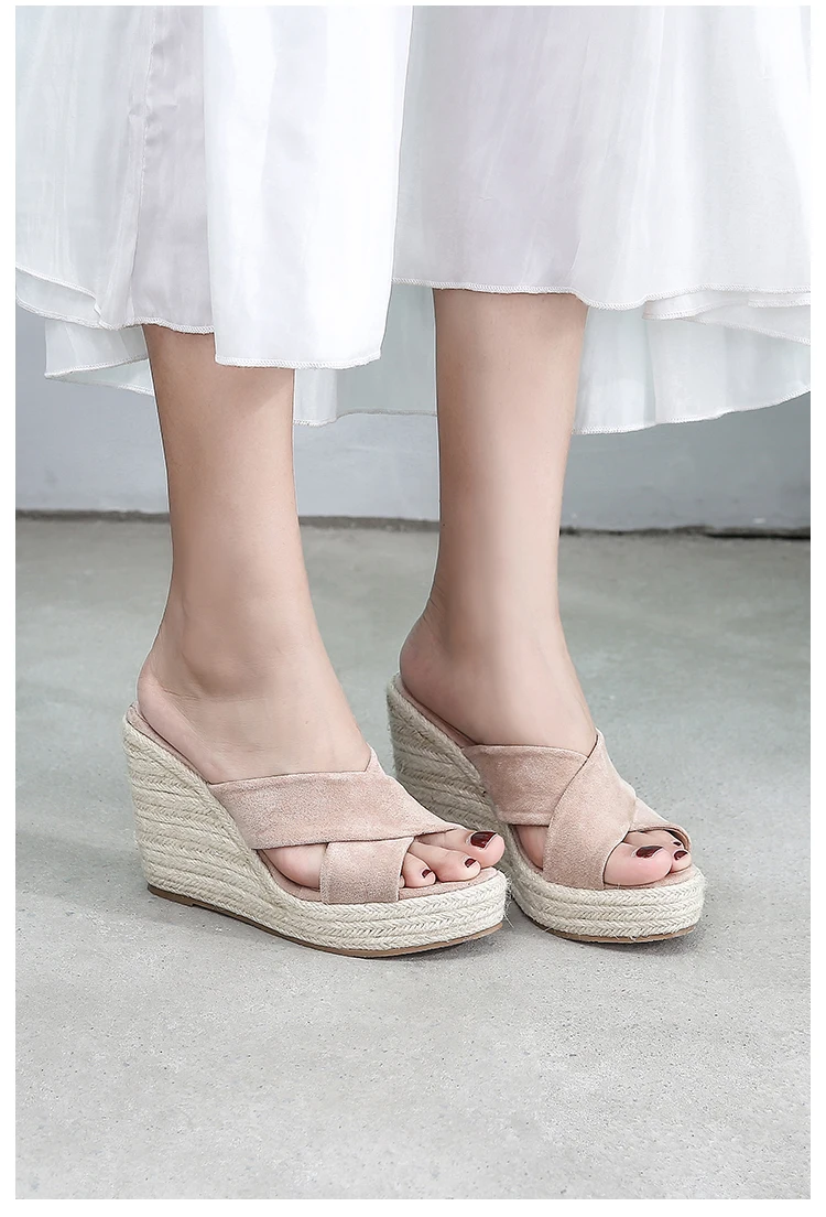 ZUZI Espadrilles Wedge Sandal Women's Shoes Natural Jute Woven Platform High Heel Sexy Slippers Shoes Casual